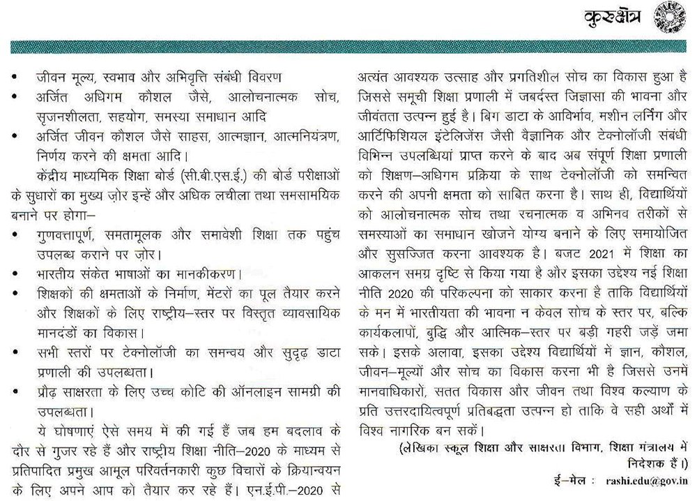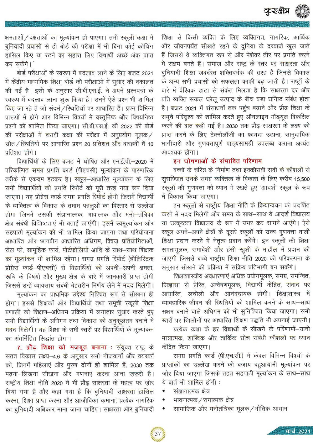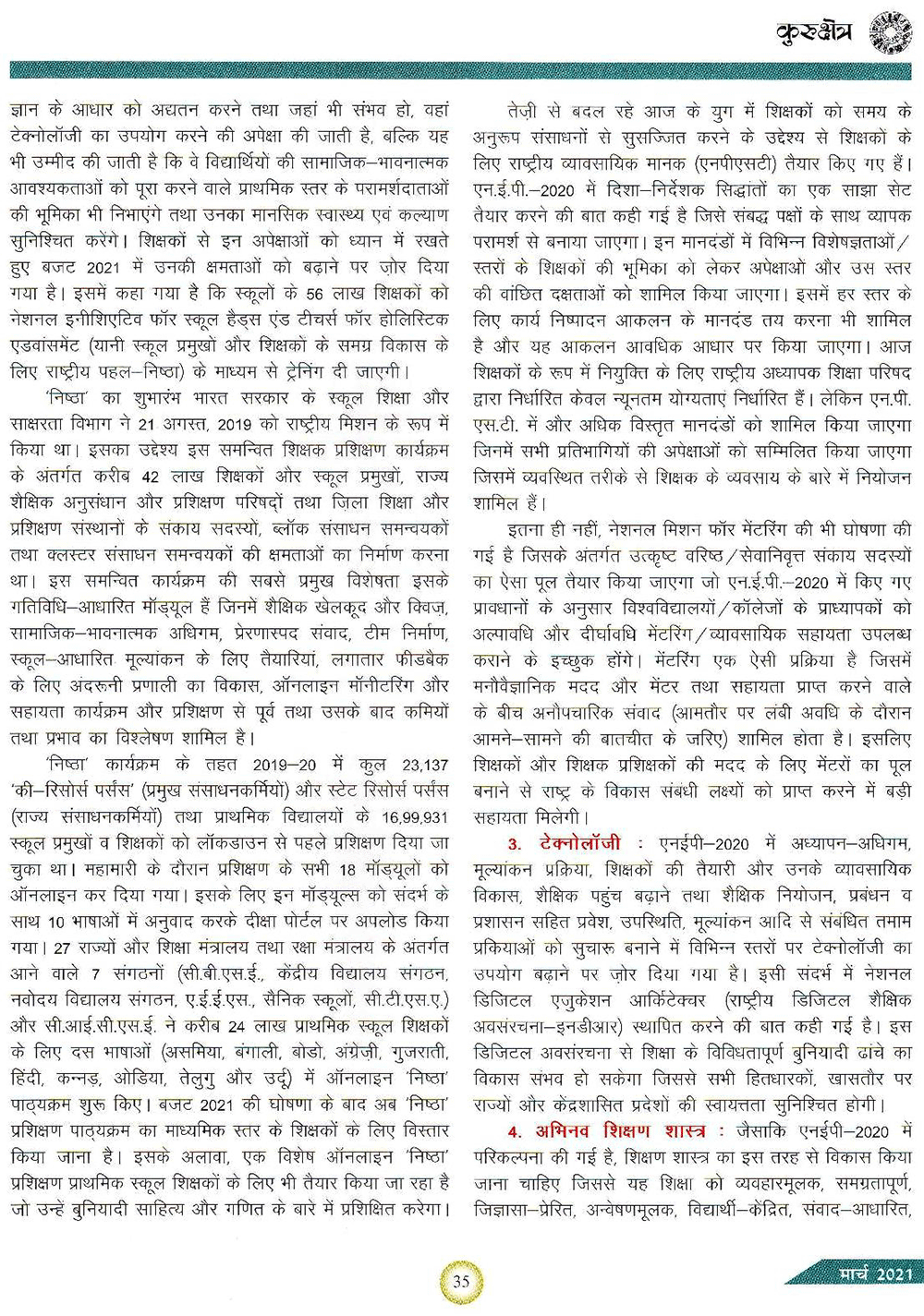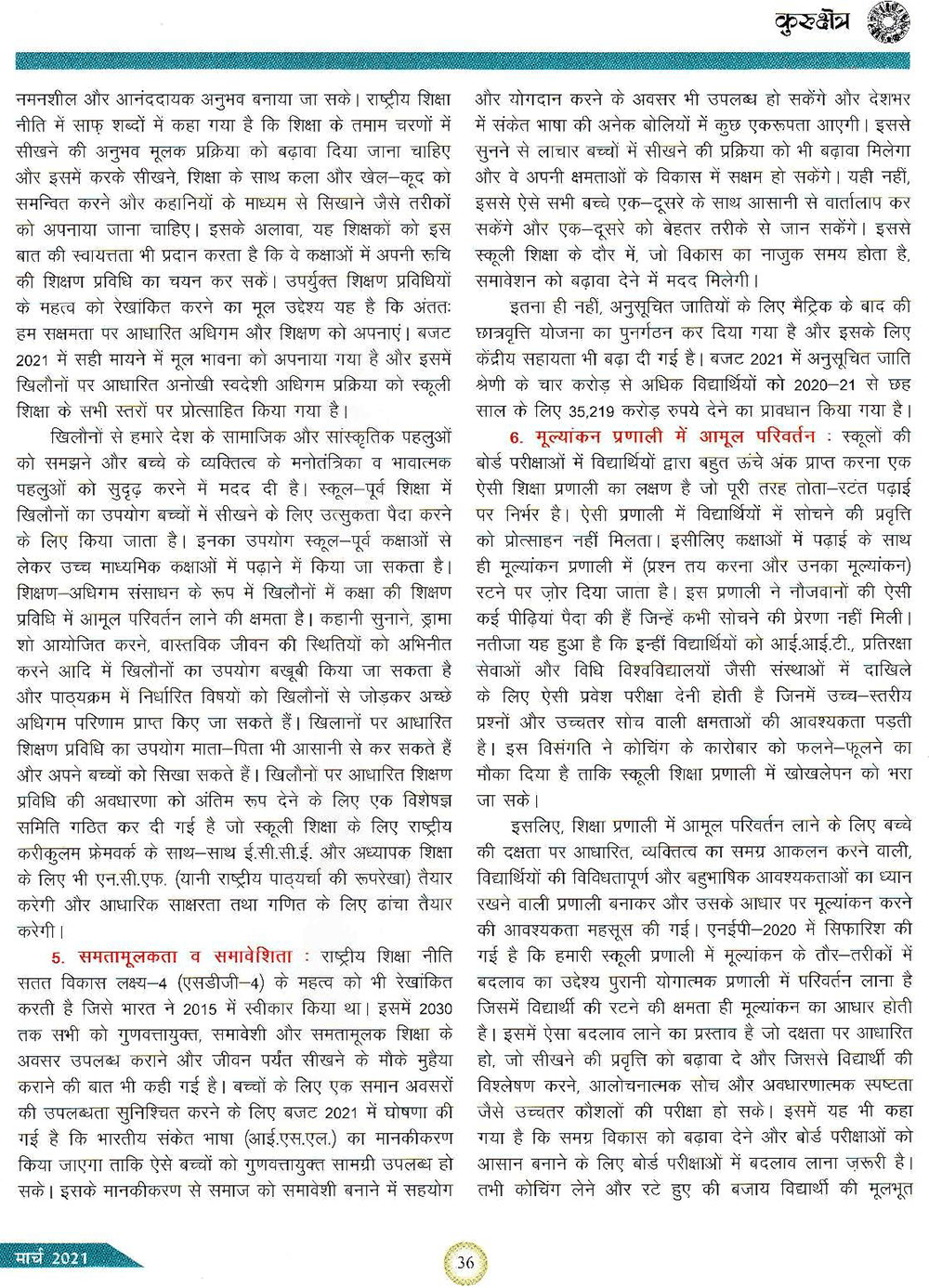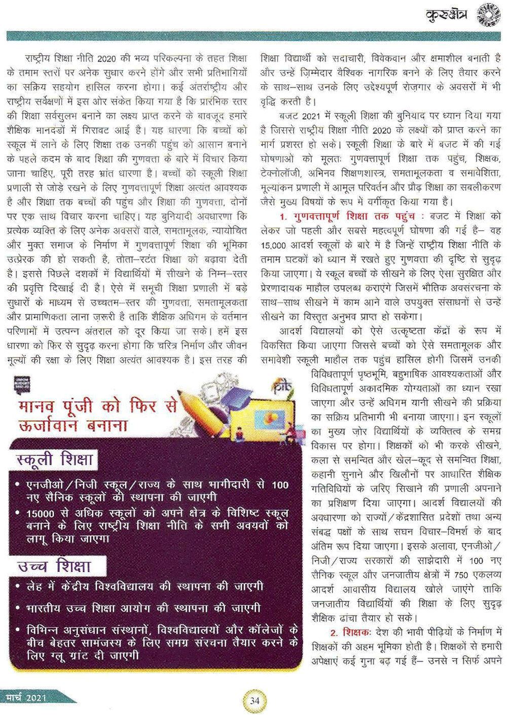 कुरुक्षेत्र : शिक्षा क्षेत्र को बढ़ावा (20-03-2021)