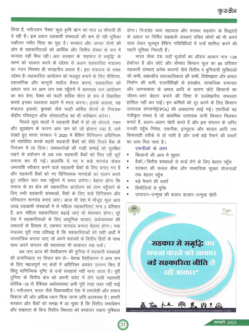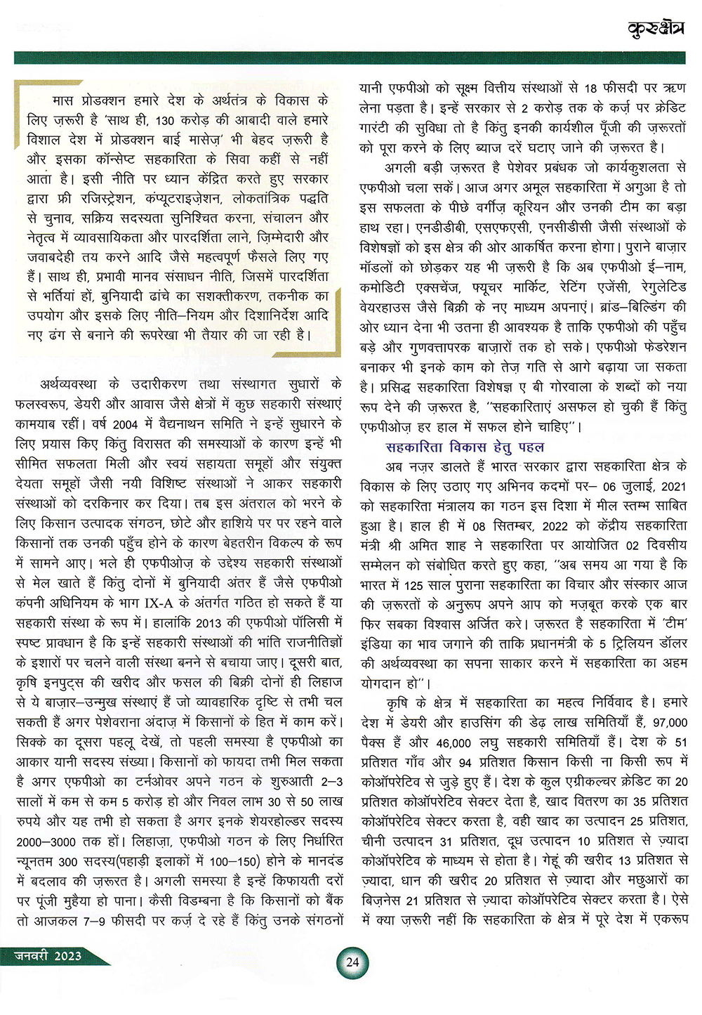 कुरुक्षेत्र : कृषि सहकारिता के विविध आयाम