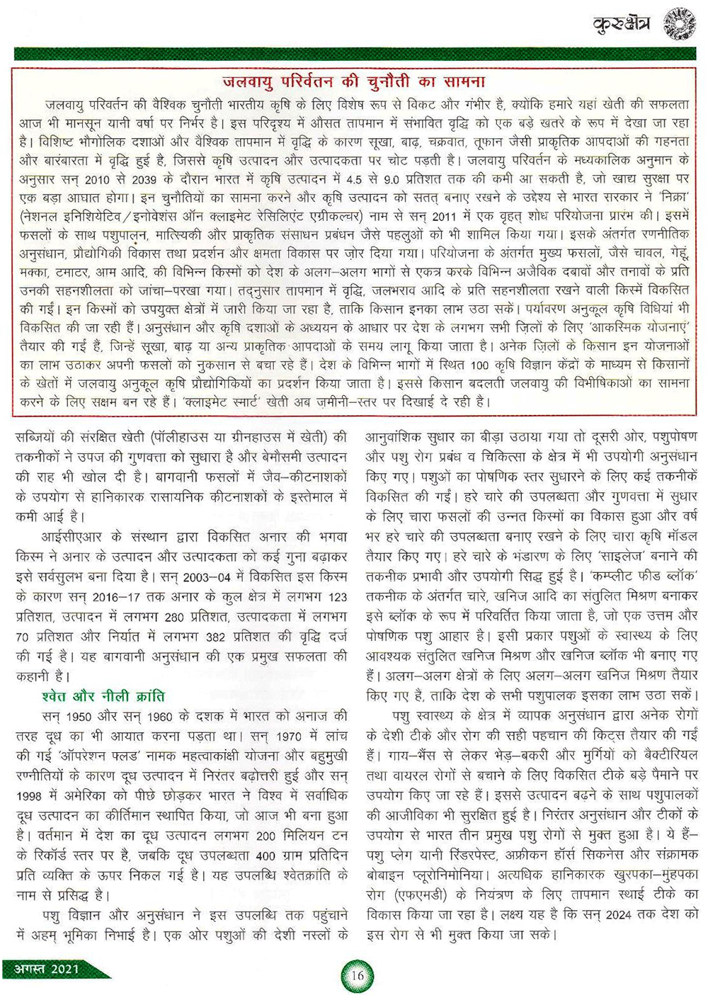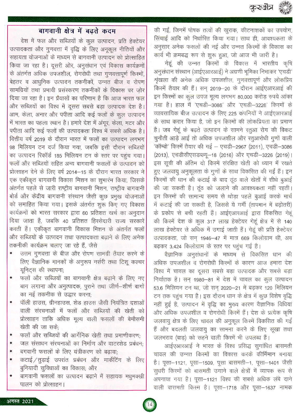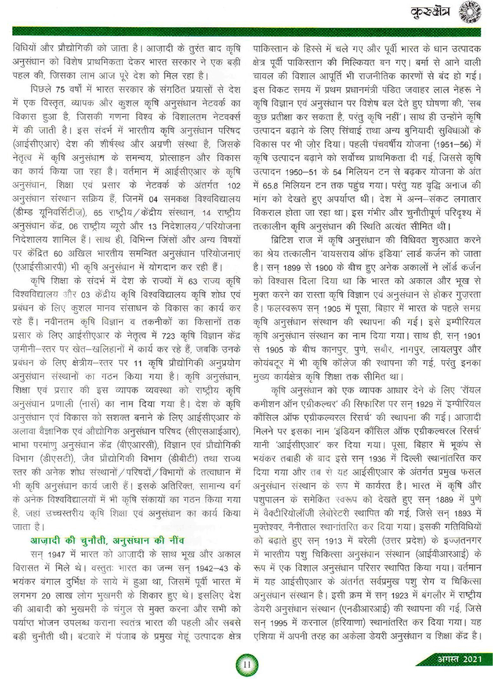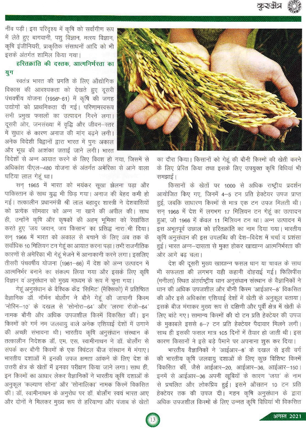 कुरुक्षेत्र : हरितक्रांति से सदाबहार क्रांति की ओर (21-08-2021)