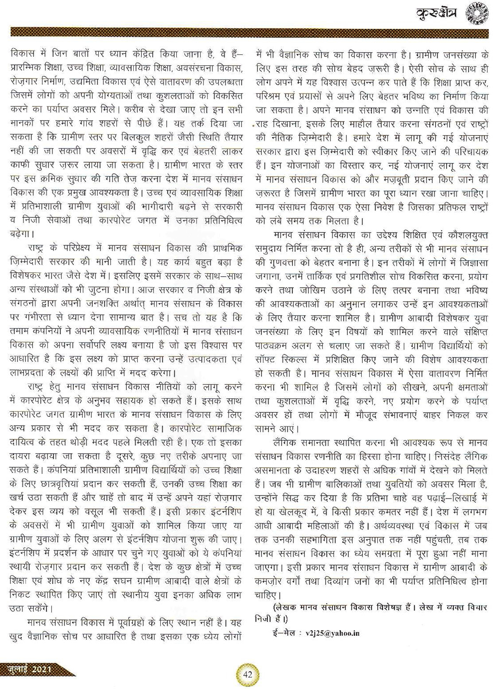 कुरुक्षेत्र : मानव संसाधन विकास (24-07-2021)