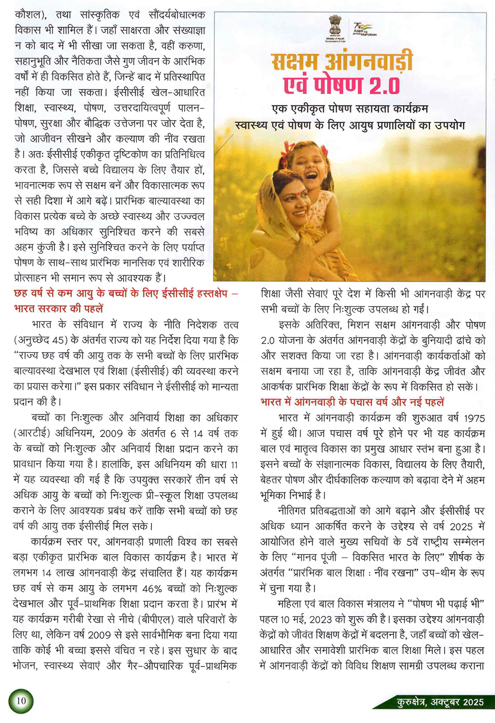 कुरुक्षेत्र : मिशन सक्षम आंगनवाड़ी और पोषण 2.0 पहलें