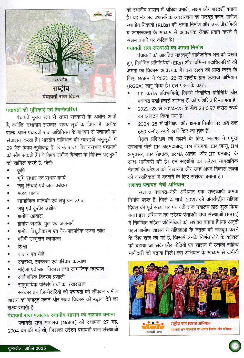 कुरुक्षेत्र नवम्बर 2015 : पंचायती राज प्रणाली का सशक्तिकरण