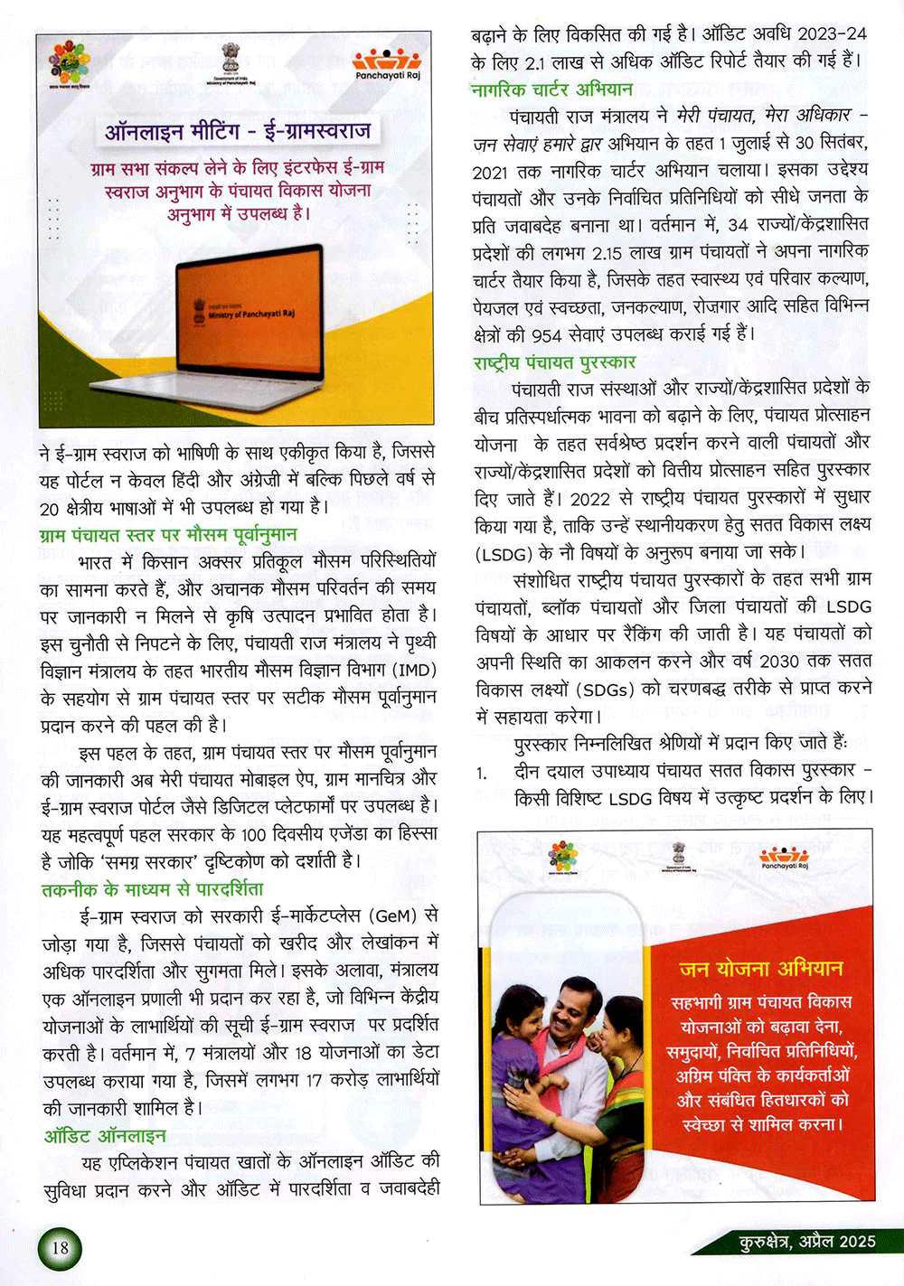 कुरुक्षेत्र : पंचायती राज : उपलब्धियां और चुनौतियां (21-07-2018)