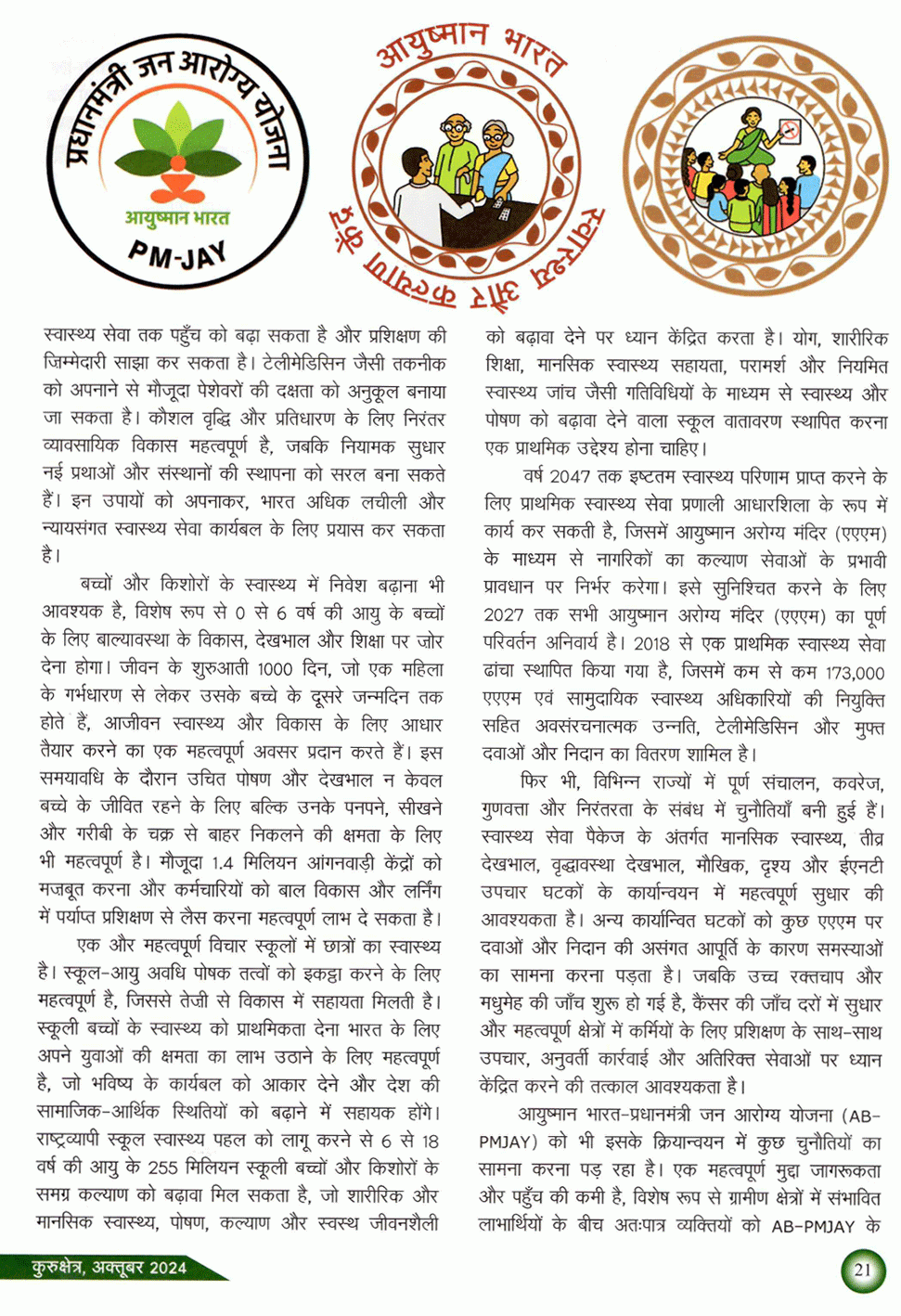 कुरुक्षेत्र : आयुष्मान भारत : ग्रामीणों के स्वास्थ्य में सुधार (06-11-2021)