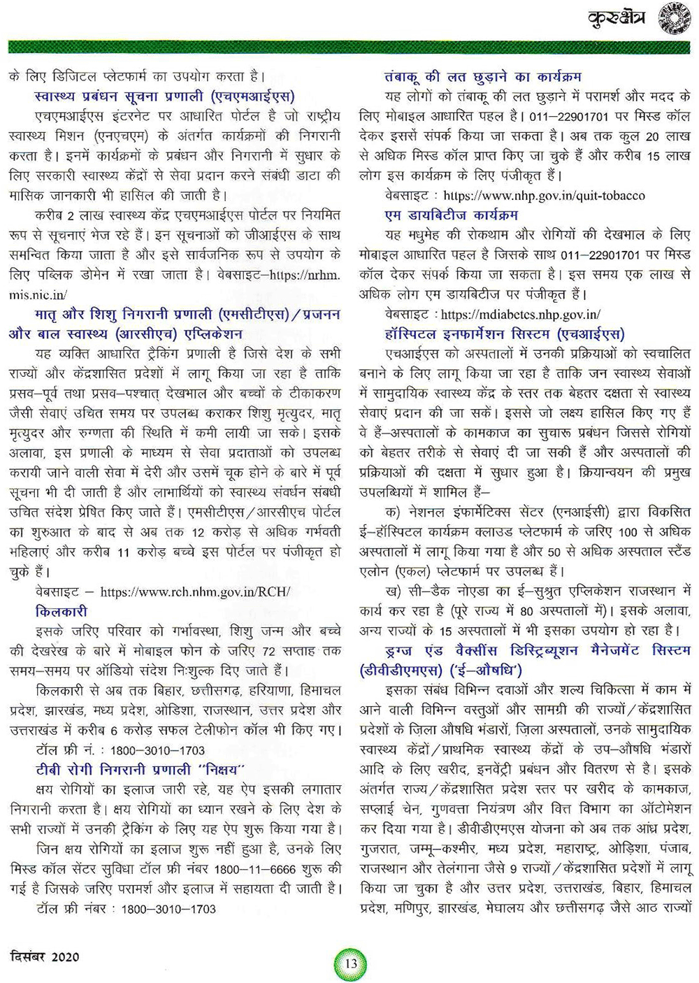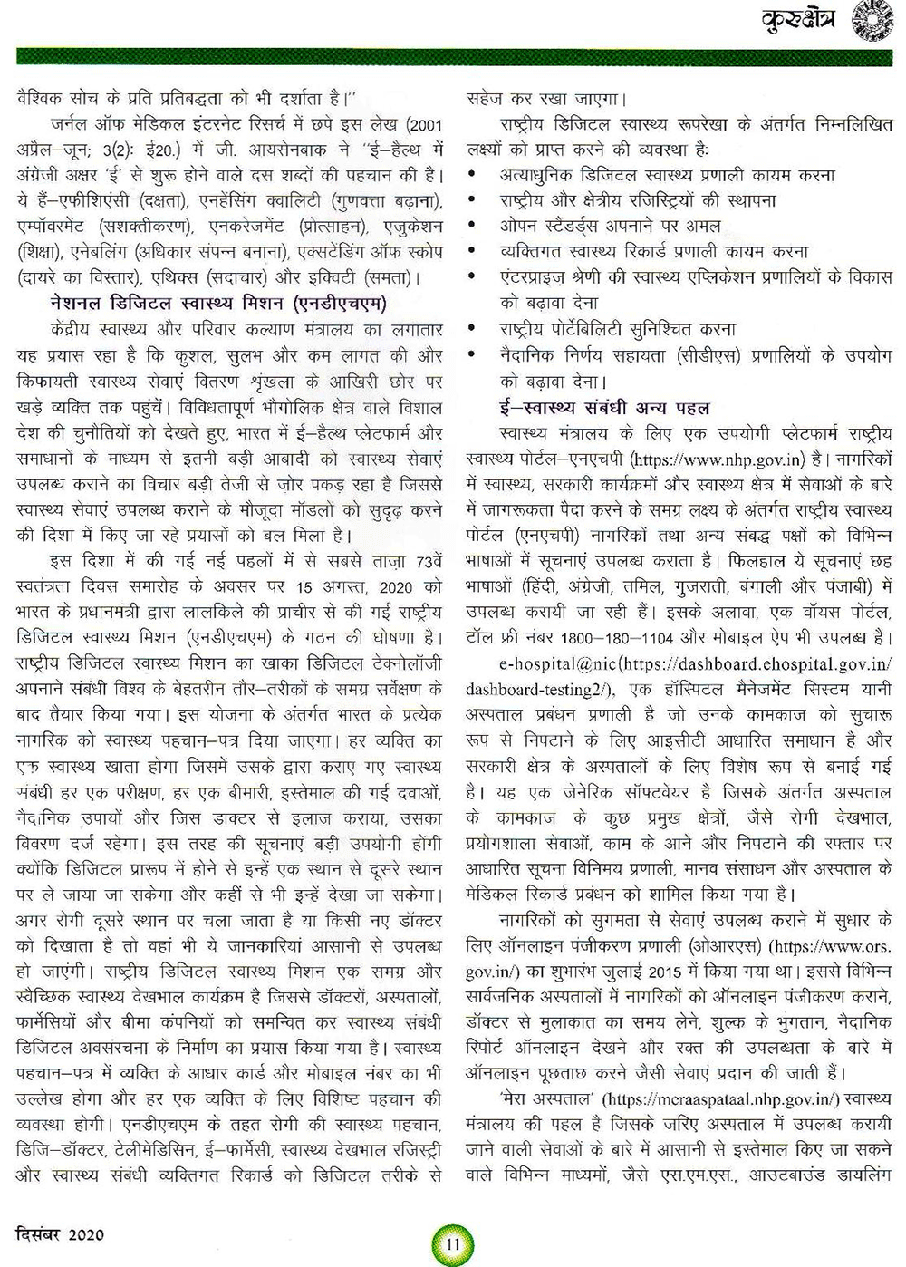 कुरुक्षेत्र : ई-स्वास्थ्य क्रांति : सर्वे संतु निरामया की ओर (26-12-2020)
