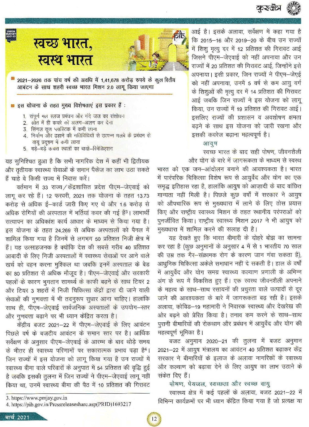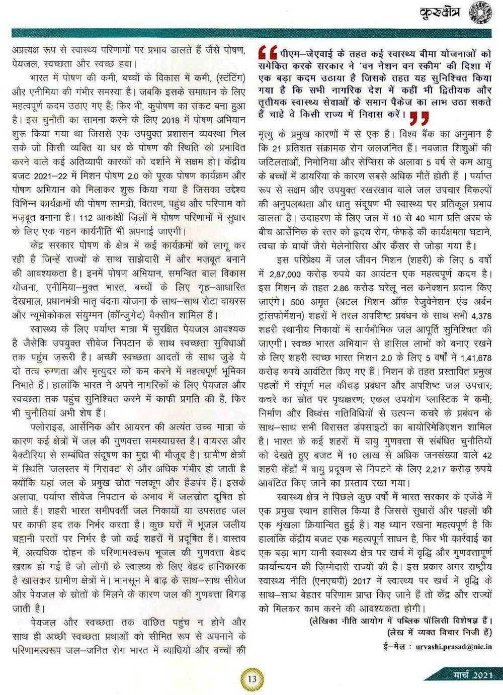 कुरुक्षेत्र : स्वस्थ नागरिकों से सशक्त राष्ट्र का निर्माण (27-03-2021)