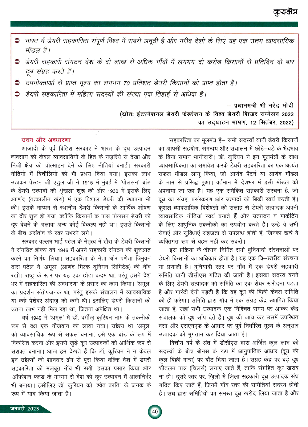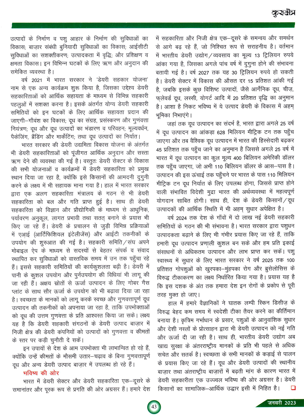 कुरुक्षेत्र : भारत में डेयरी सहकारिता