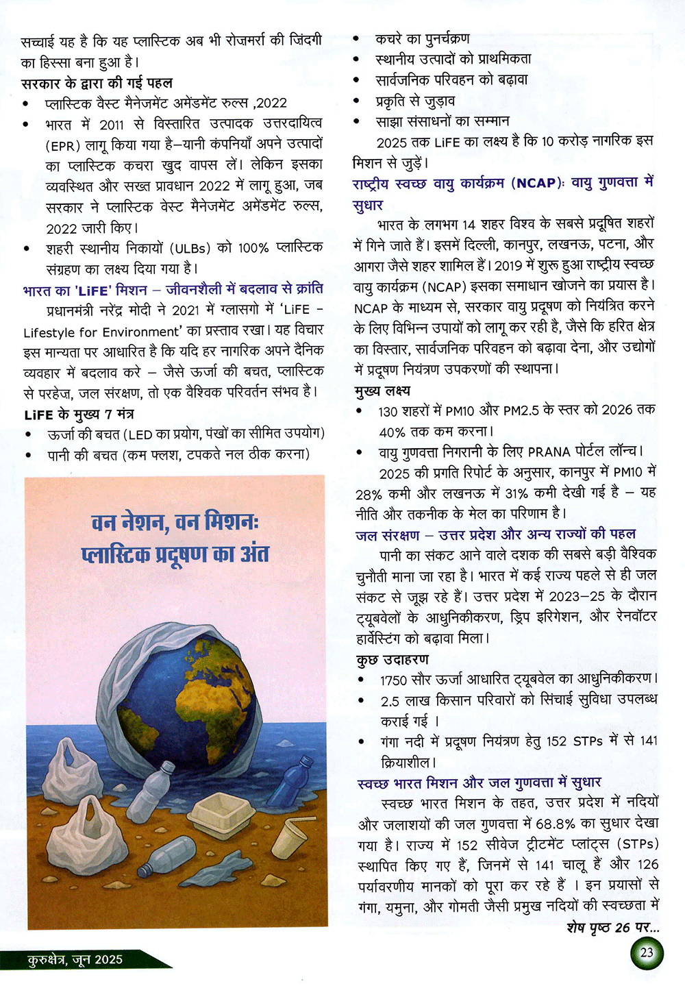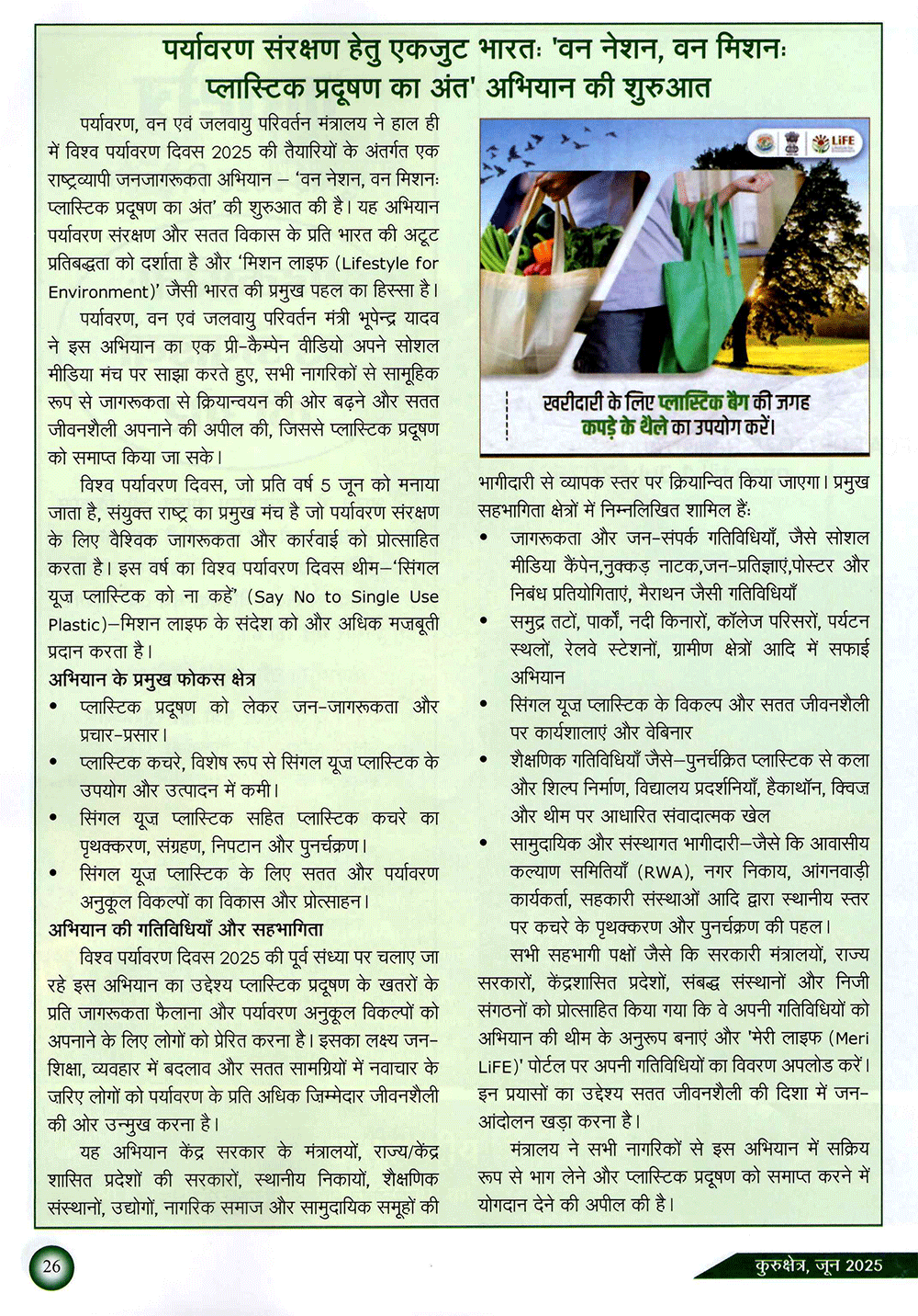 कुरुक्षेत्र : प्लास्टिक मुक्त भारत 2025 का पर्यावरणीय मिशन