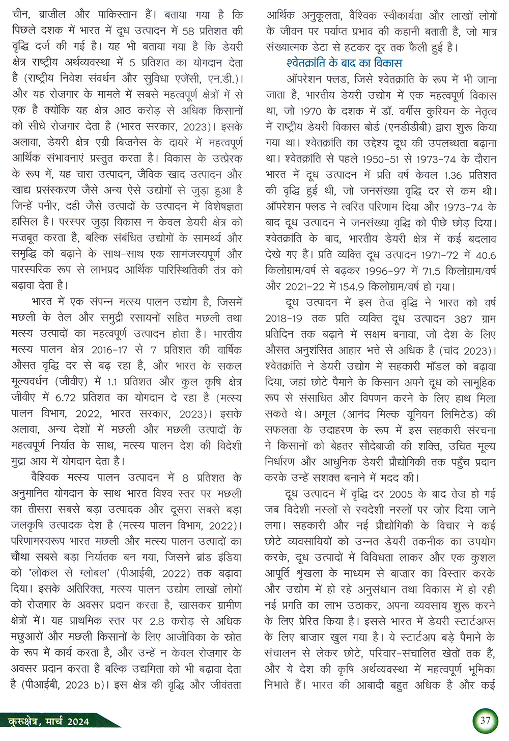 कुरुक्षेत्र मार्च 2016 : भारत में डेयरी उद्योग : सफलताएं चुनौतियां