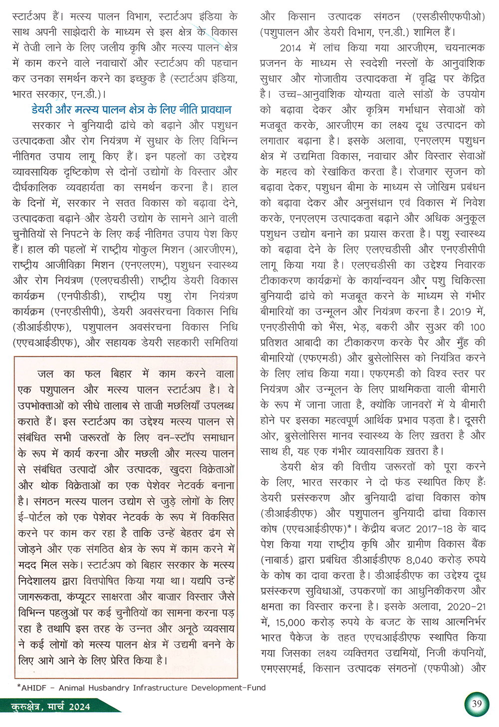 कुरुक्षेत्र : भारत में डेयरी और मत्स्य पालन क्षेत्र में अवसर