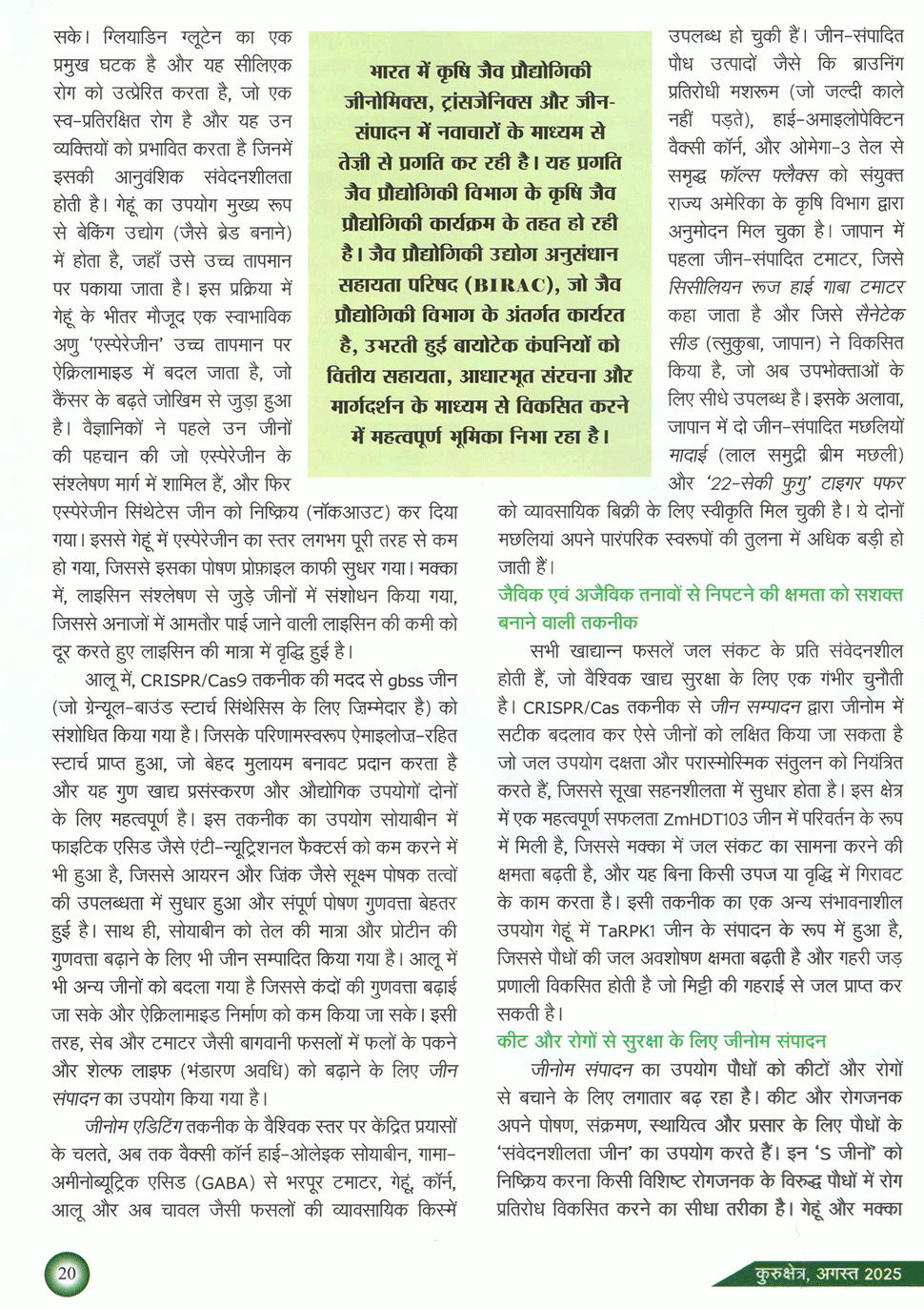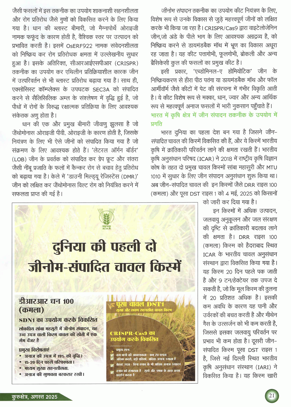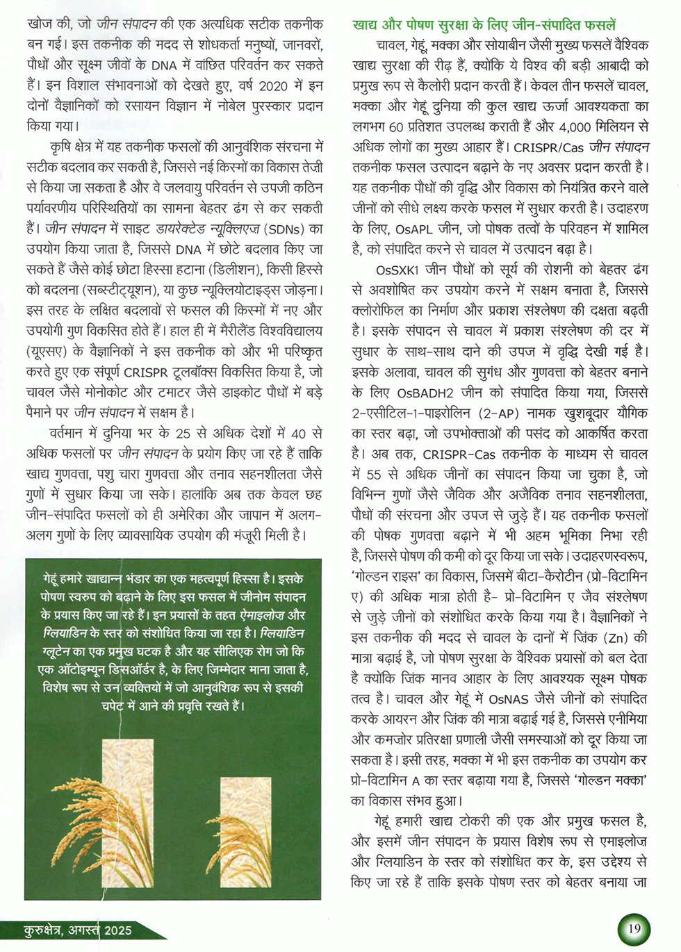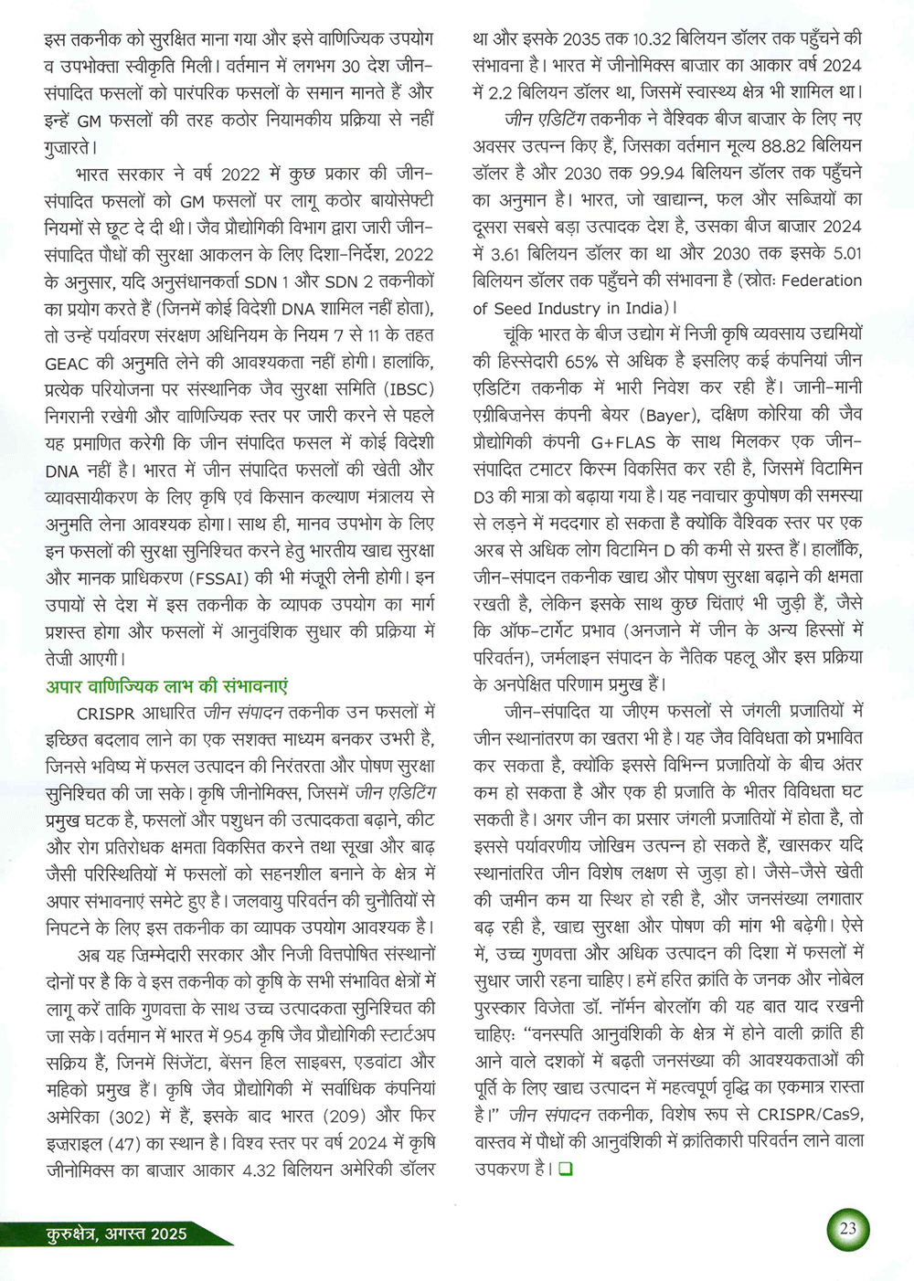 कुरुक्षेत्र : कृषि में क्रांति लाने वाली जीन संपादन तकनीक
