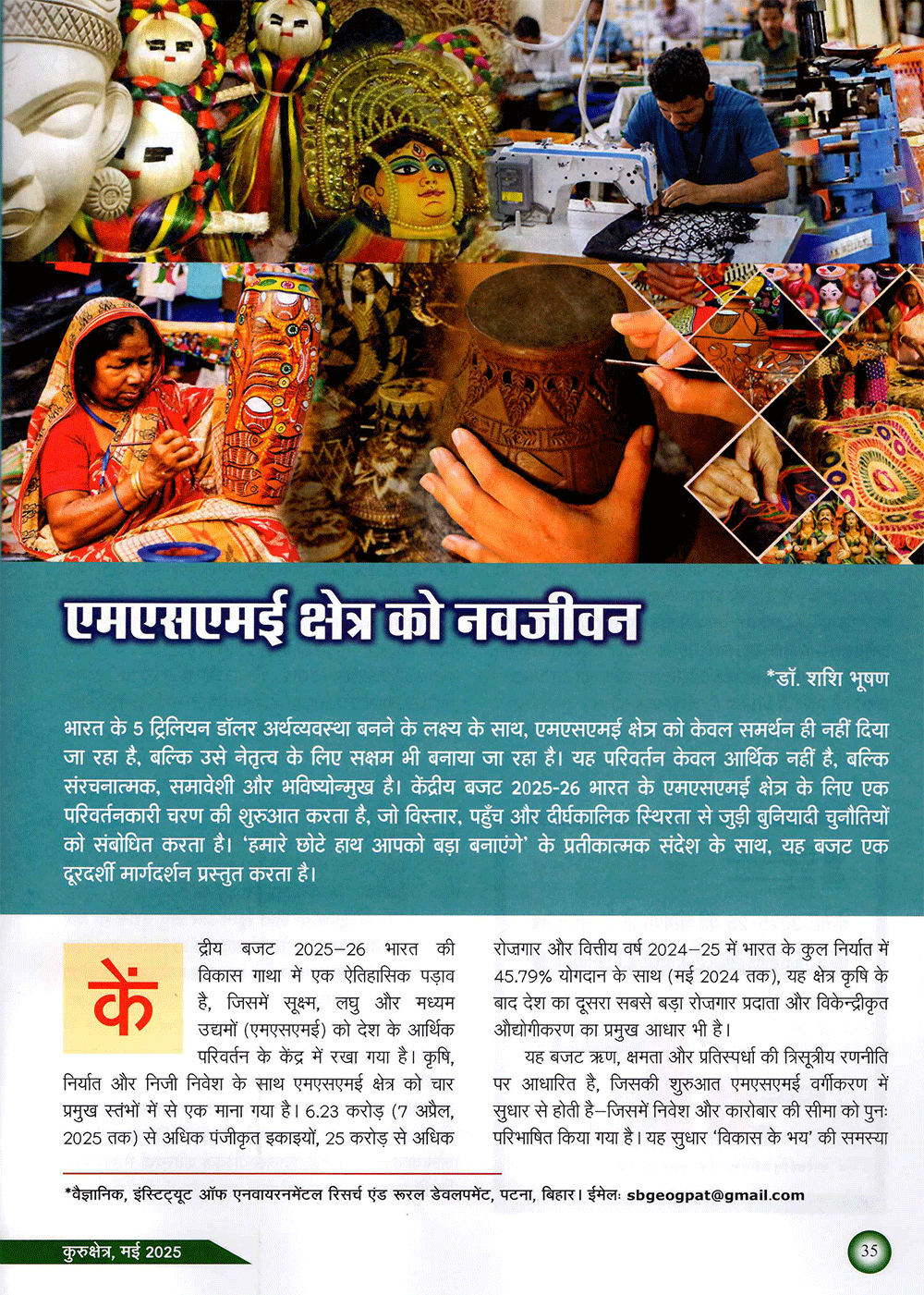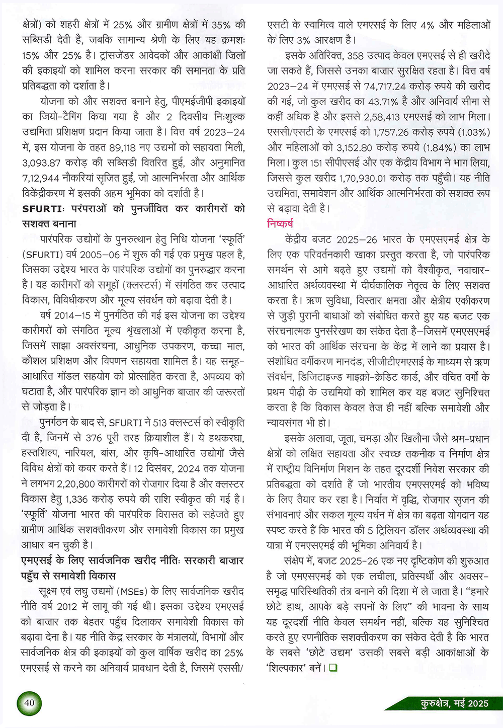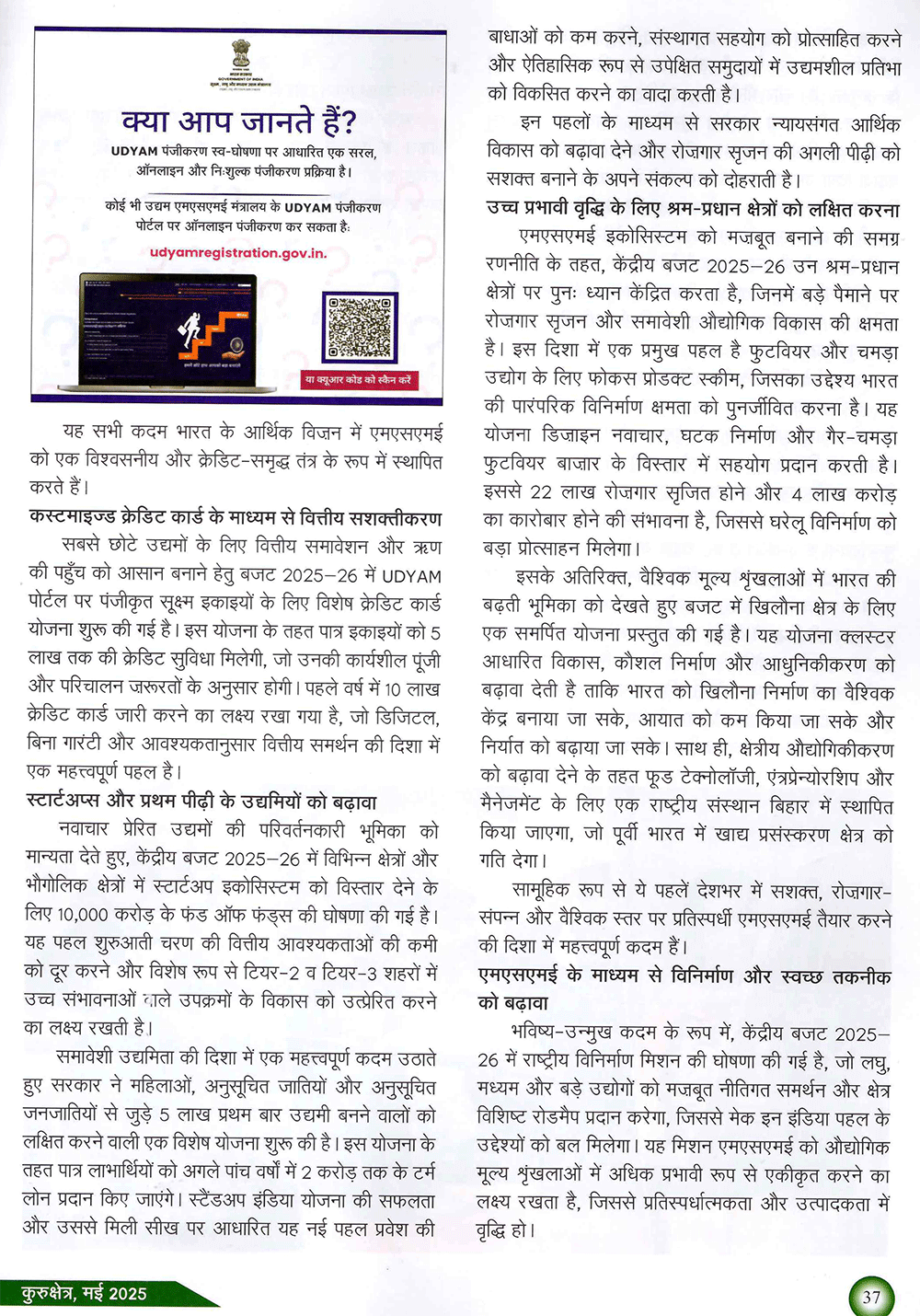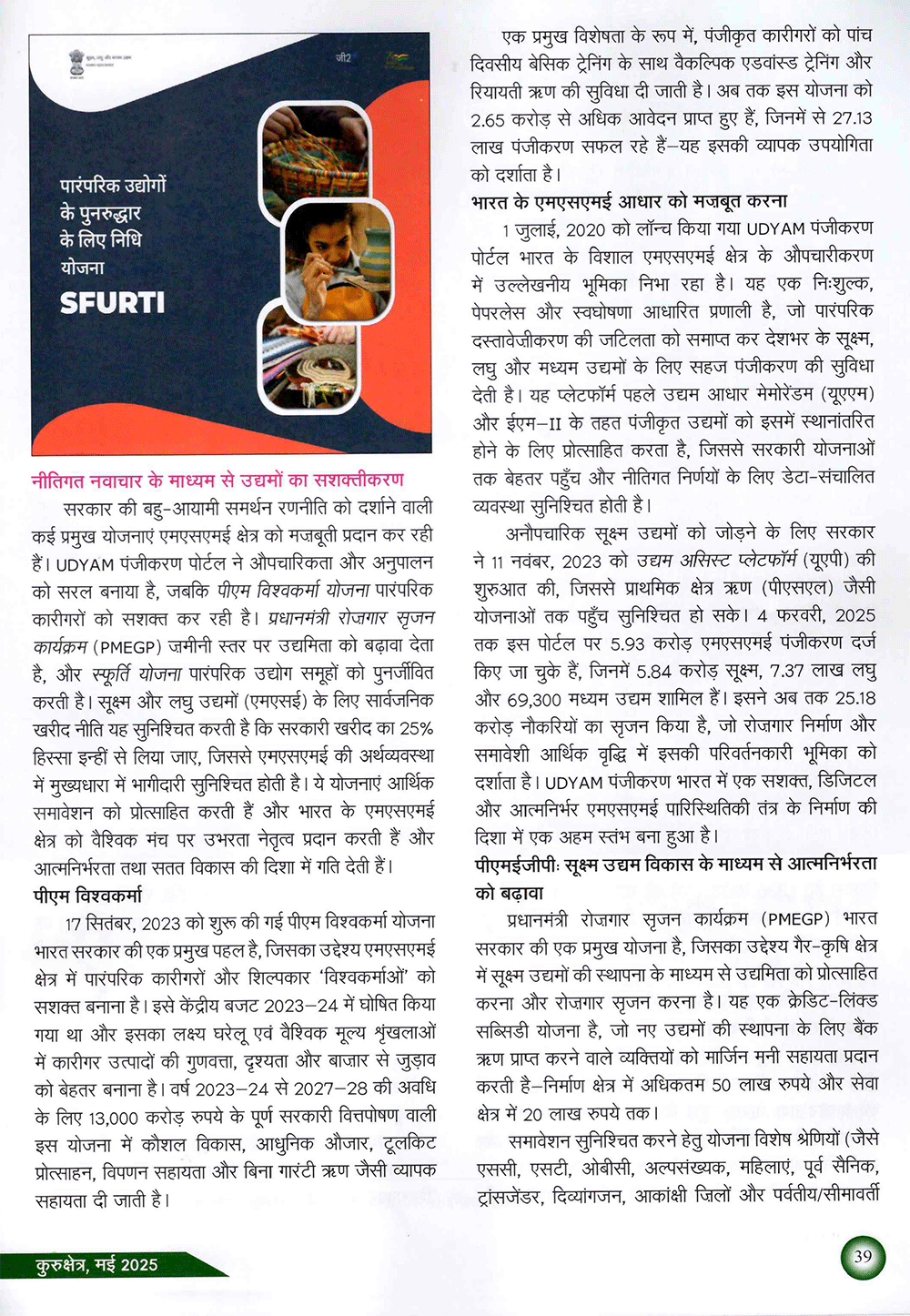 कुरुक्षेत्र : एमएसएमई क्षेत्र को नवजीवन