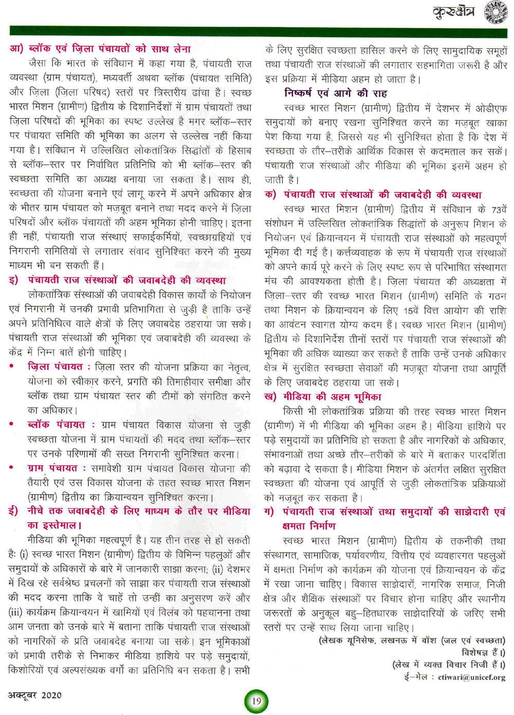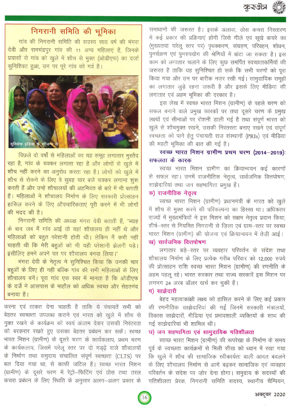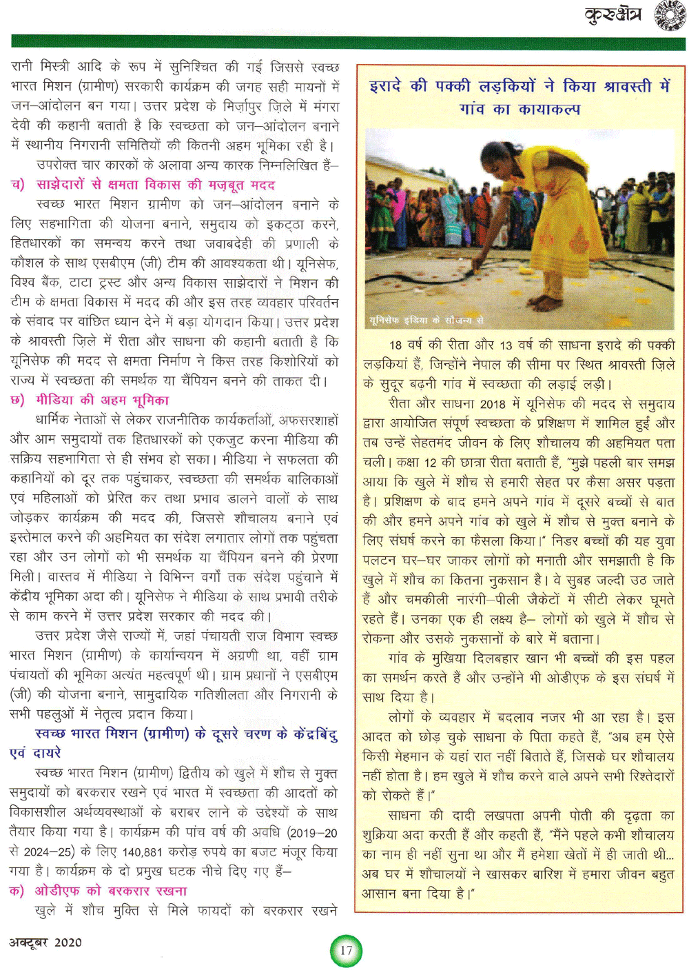 कुरुक्षेत्र : भारत को ओडीएफ बनाए रखने की चुनौती (31-10-2020)
