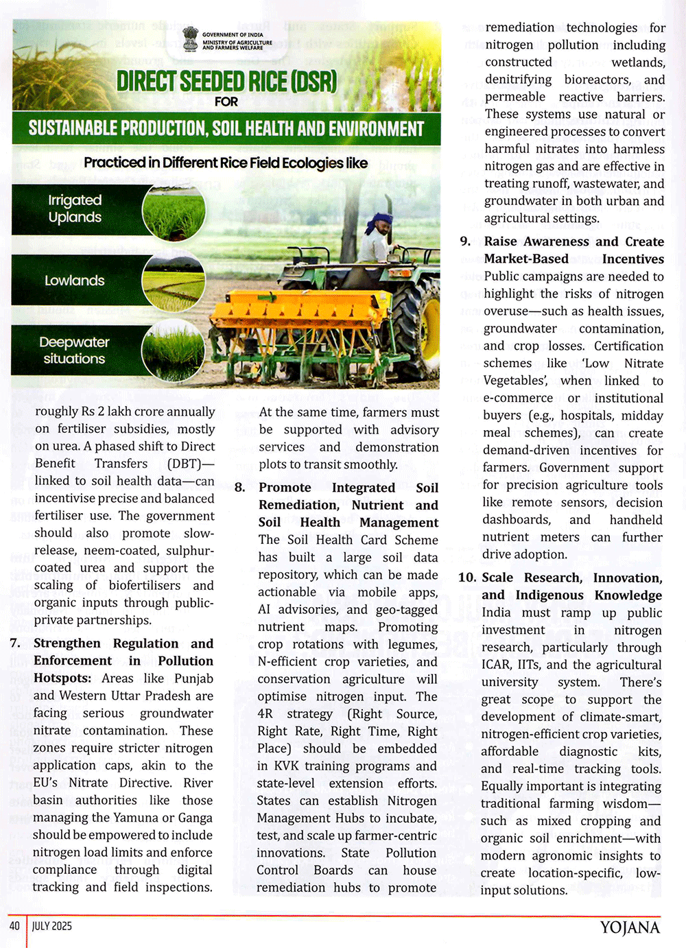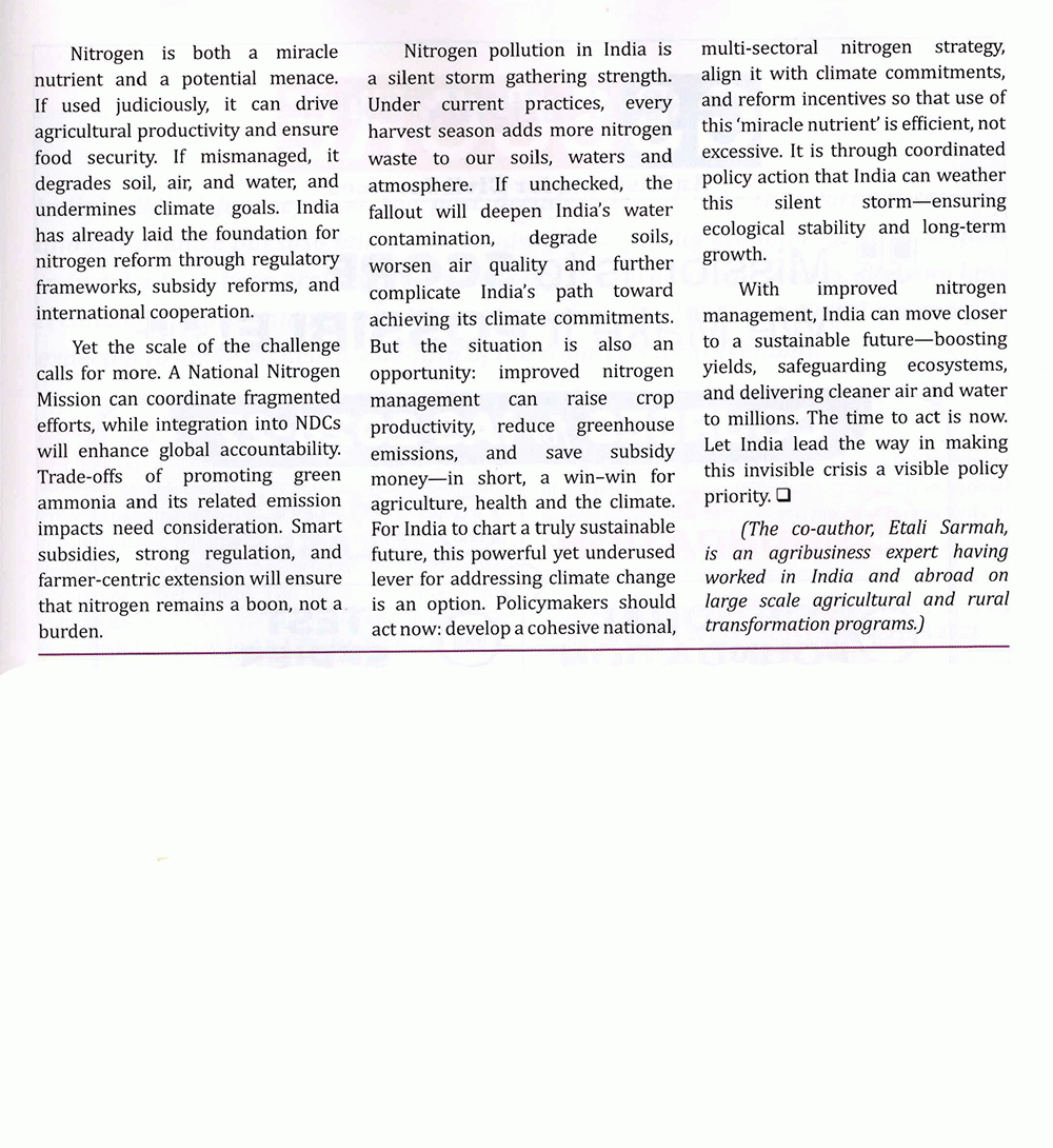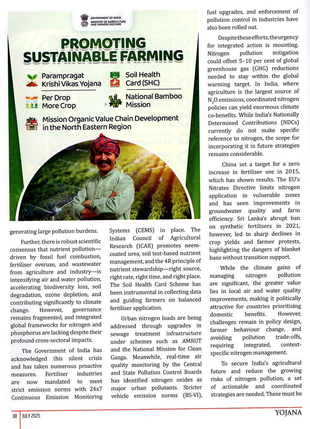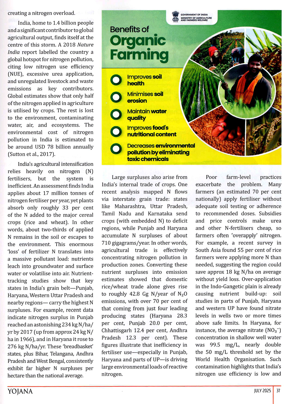 Yojana : A Silent Storm: Why India Must Act on Nitrogen Pollution and Climate Change