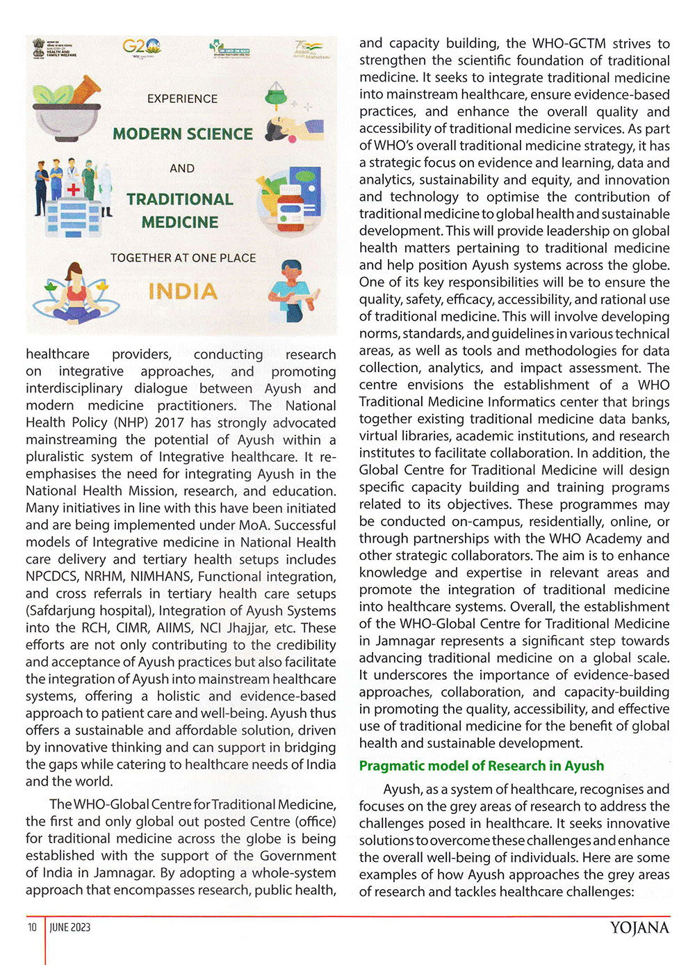 Yojana : AYUSH UNVEILING THE SCIENCE OF LIFE FOR HOLISTIC HEALTH AND WELL-BEING