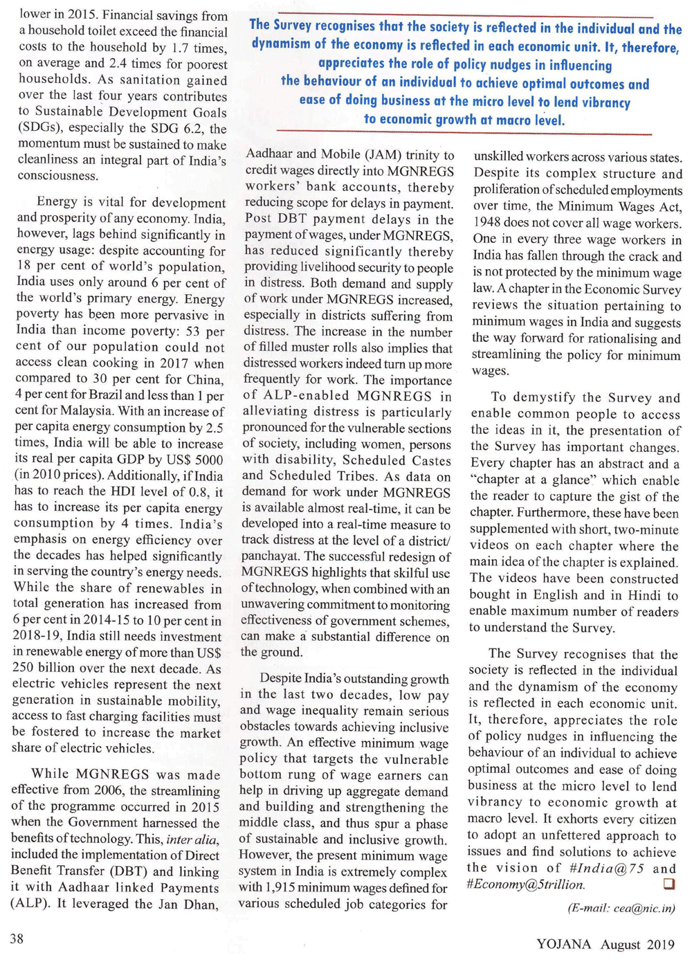 Yojana : ‘Blue Sky Thinking’ Blueprint for India@$5 Trillion (24-08-2019)