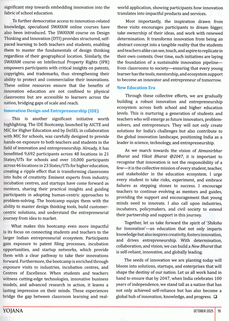Yojana : Cultivating Creativity and Enterprise