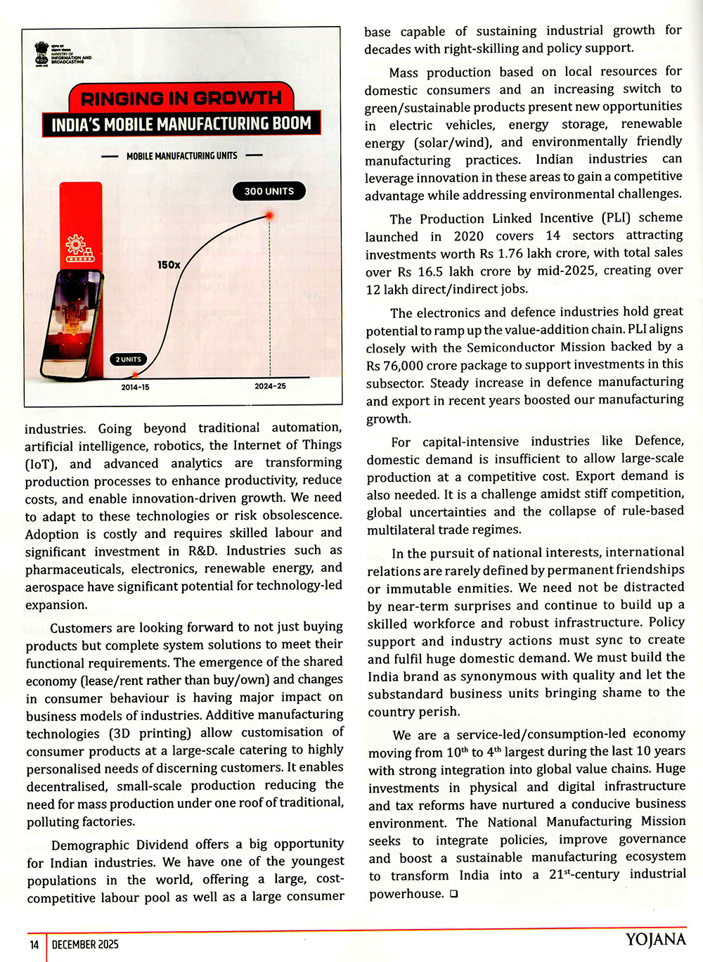 Yojana : Indian Industries : Issues, Challenges, and Opportunities