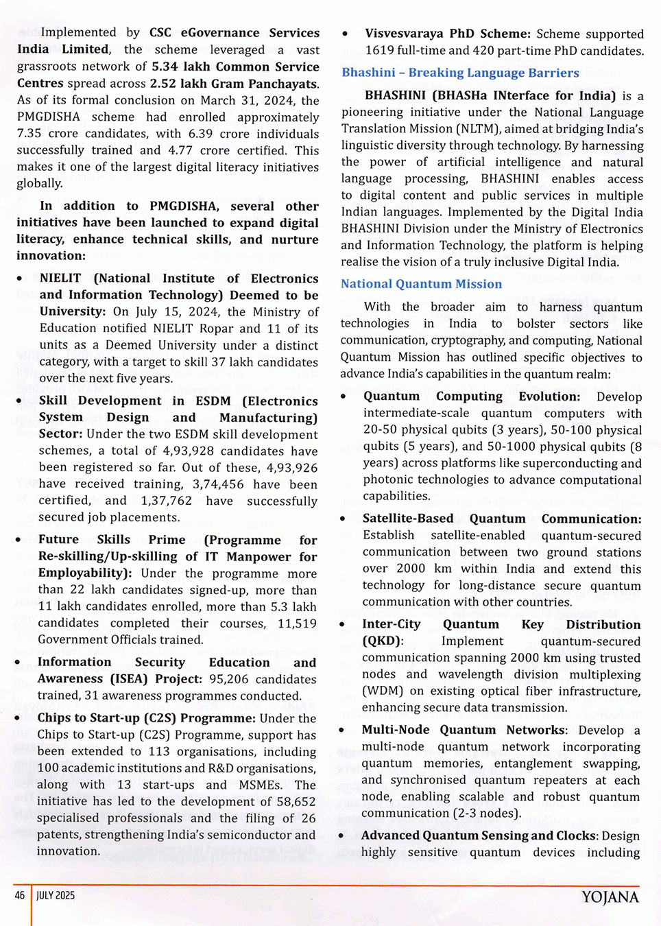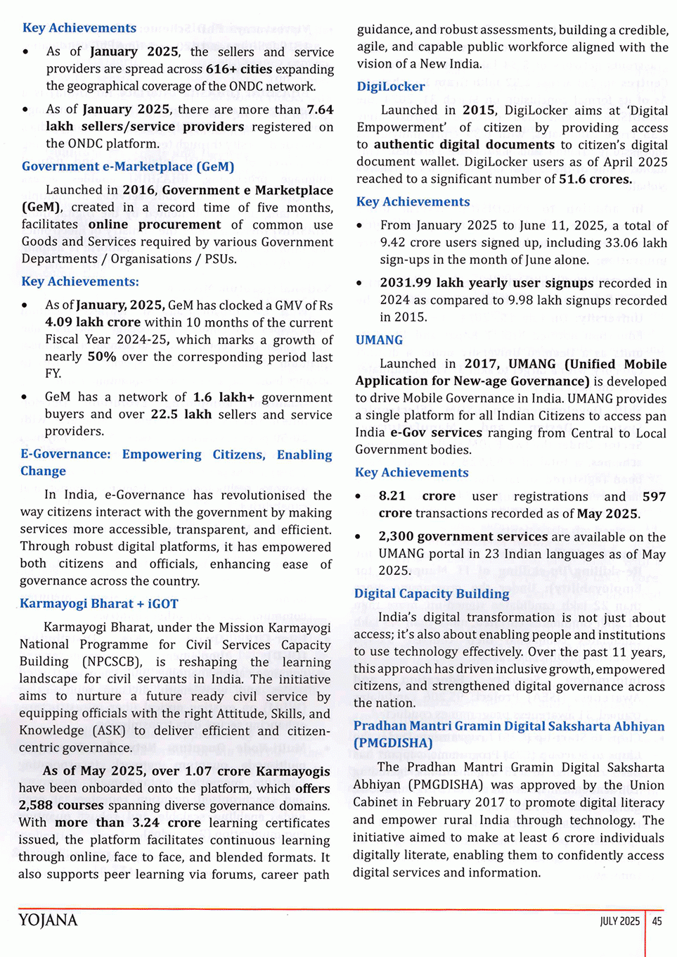 Yojana August 2015 : Harnessing Digital Technologies for Empowering India