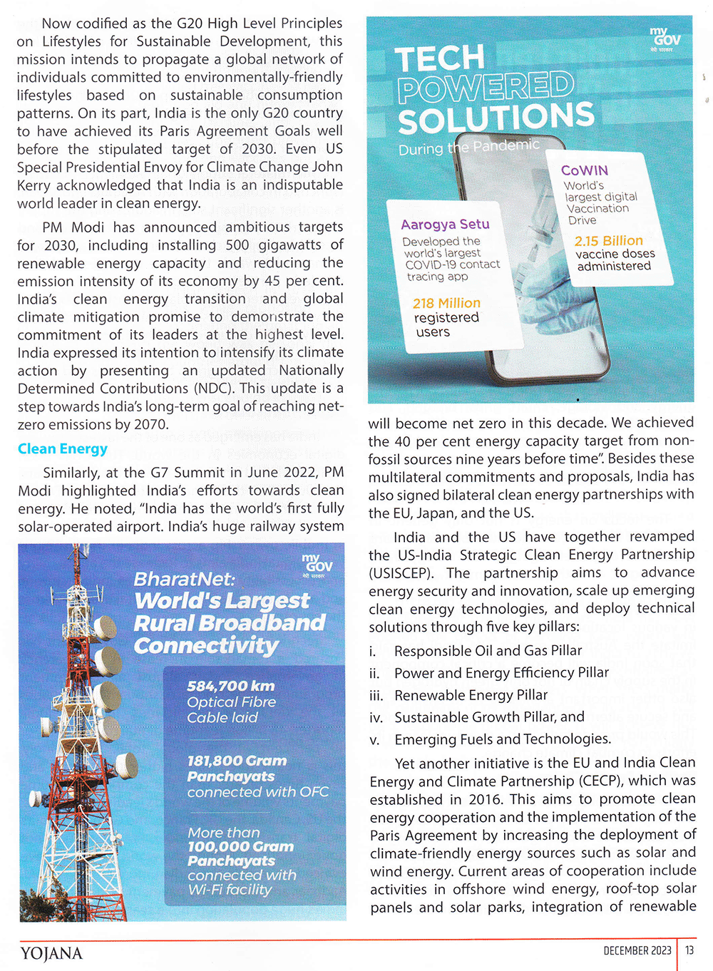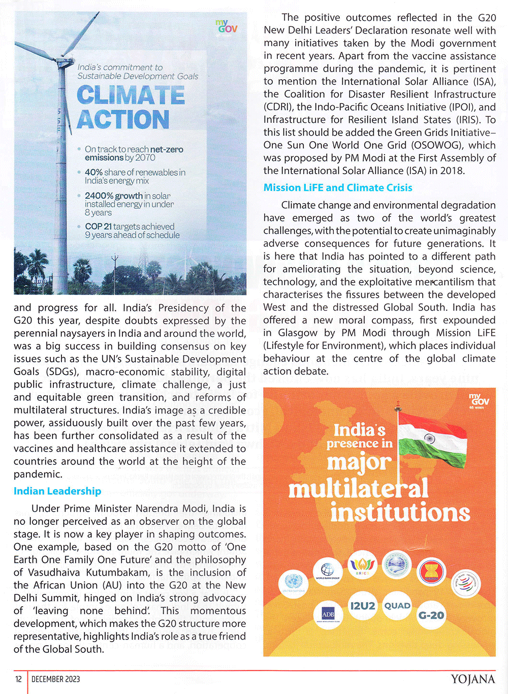 Yojana : INDIA’S RISING INFLUENCE G20 SUMMIT PUTS INDIA ON THE WORLD STAGE