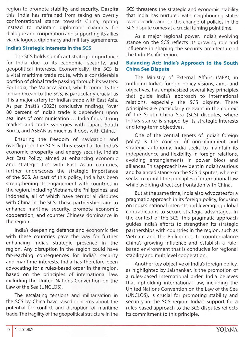 Yojana : India’s Strategic Engagement in the South China Sea