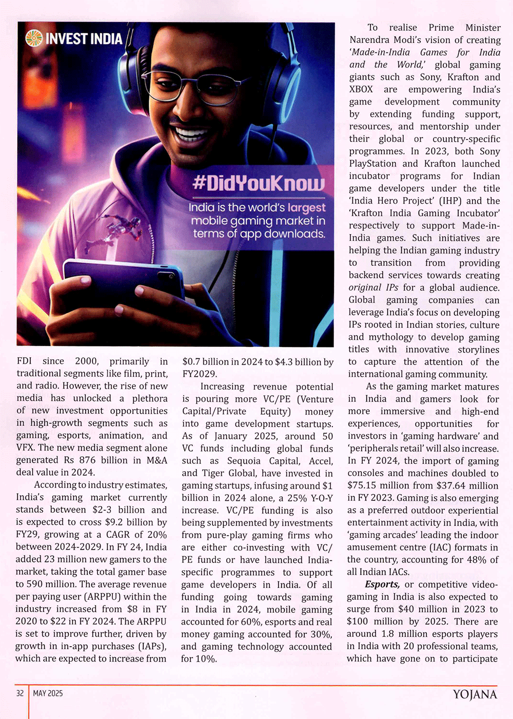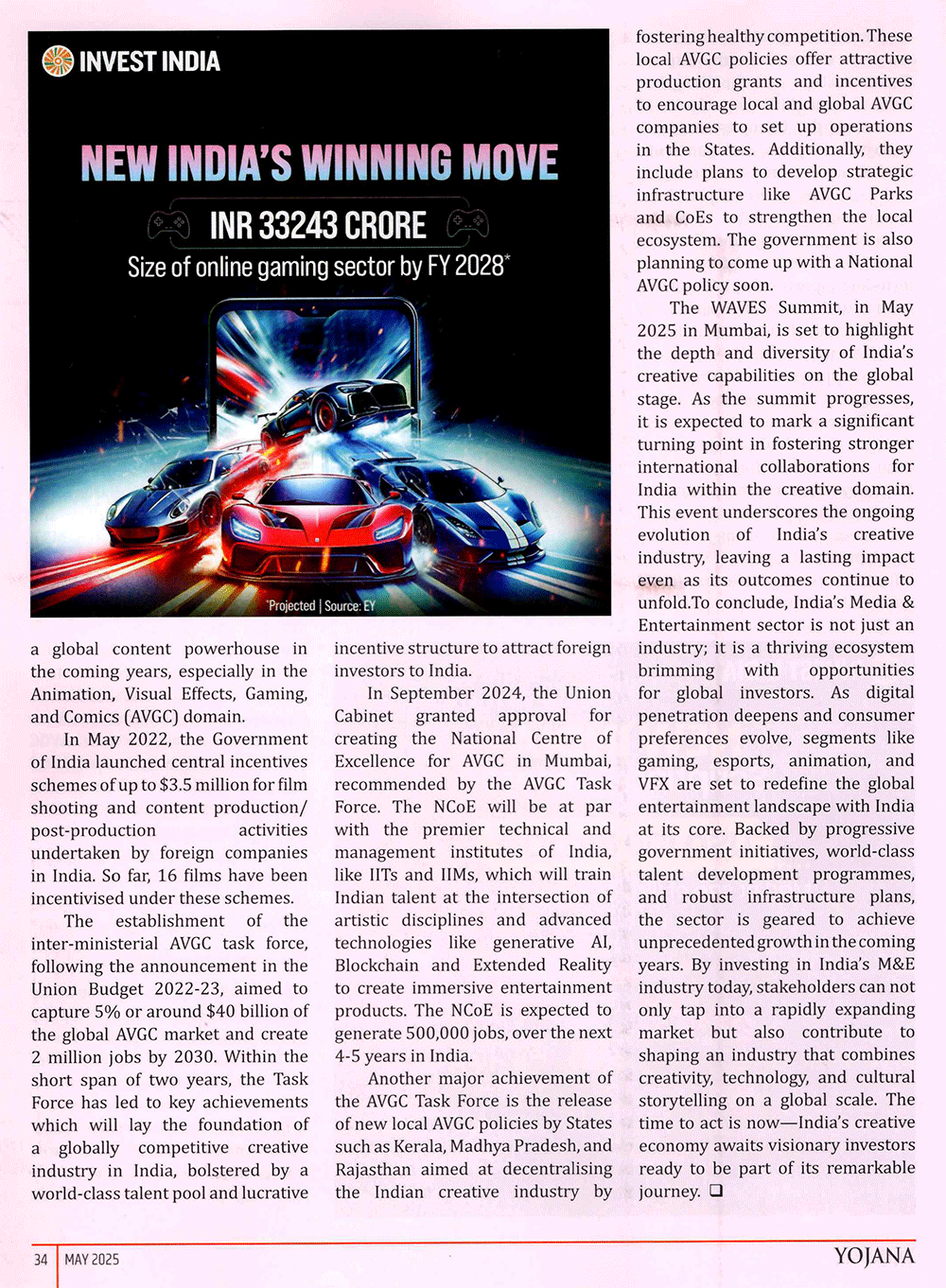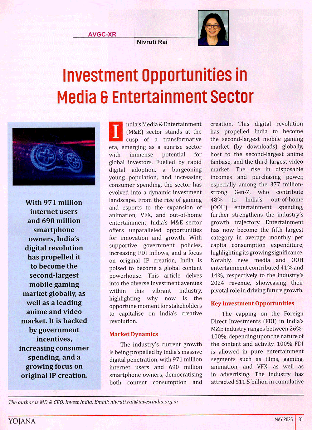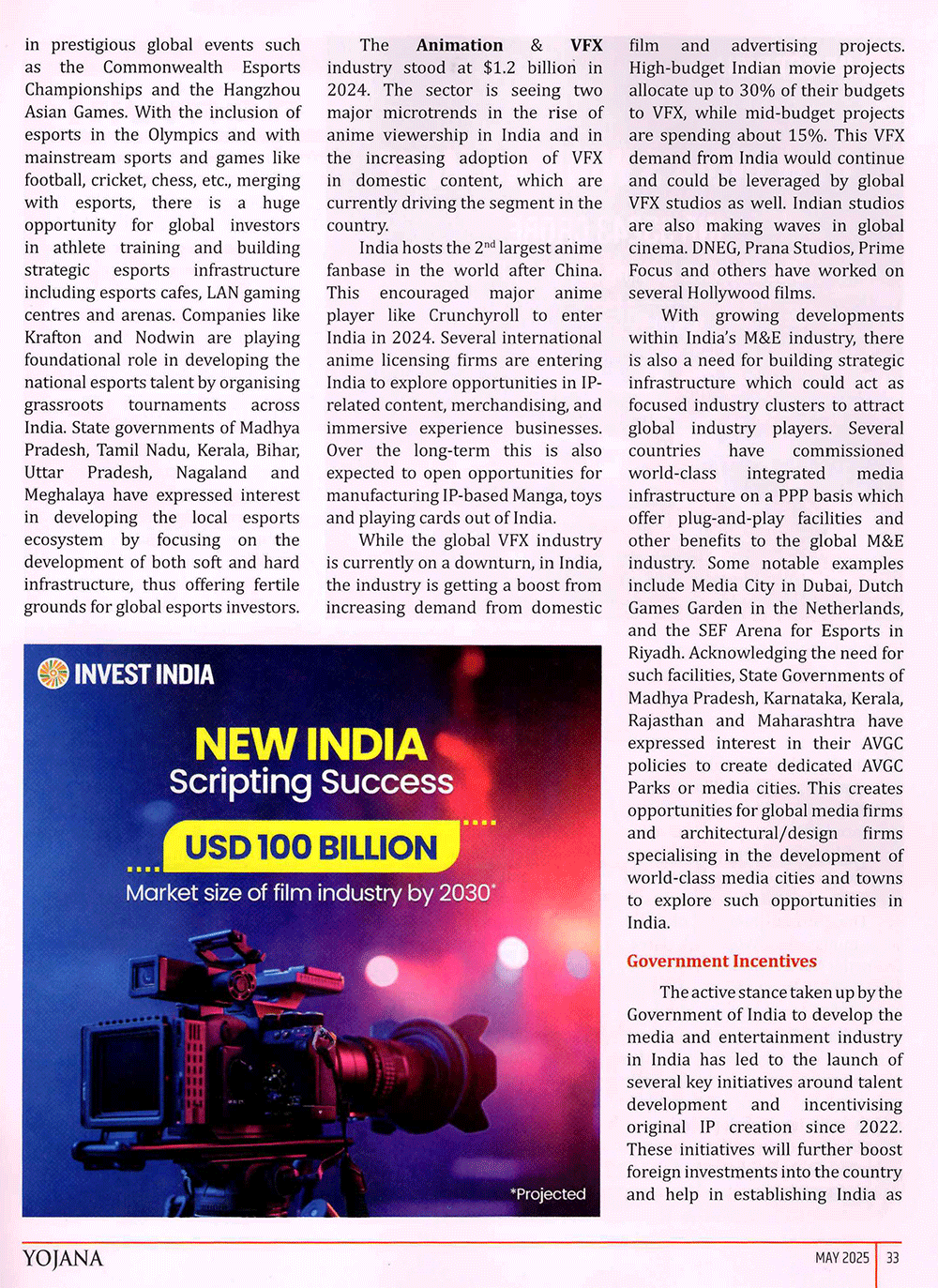 Yojana : Investment Opportunities in Media & Entertainment Sector