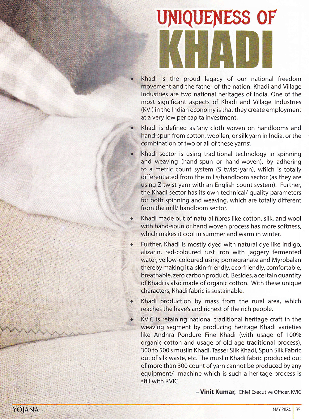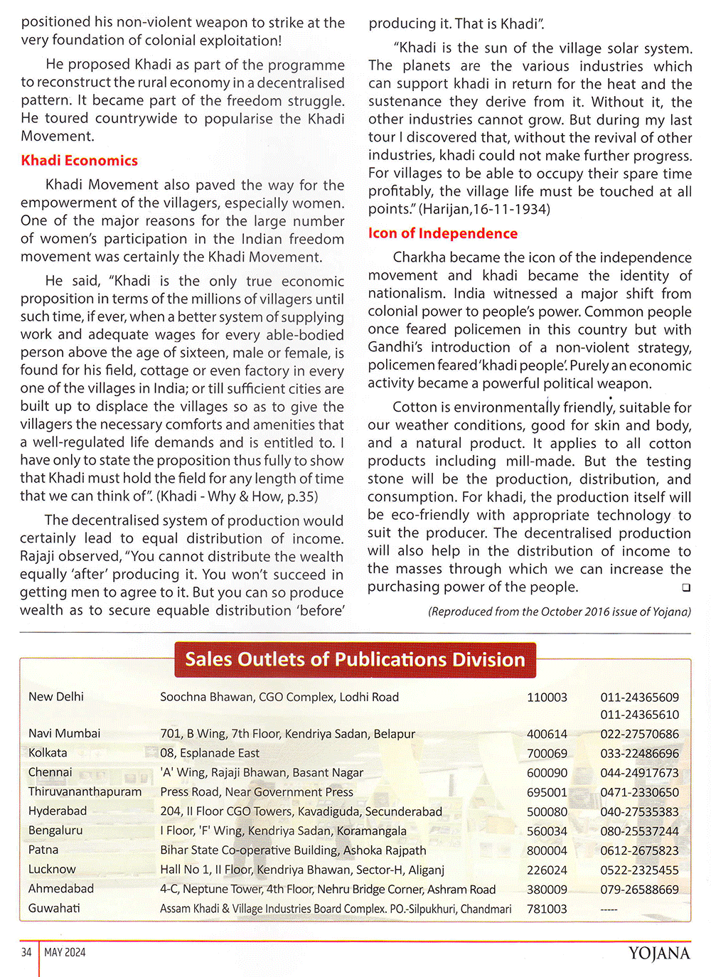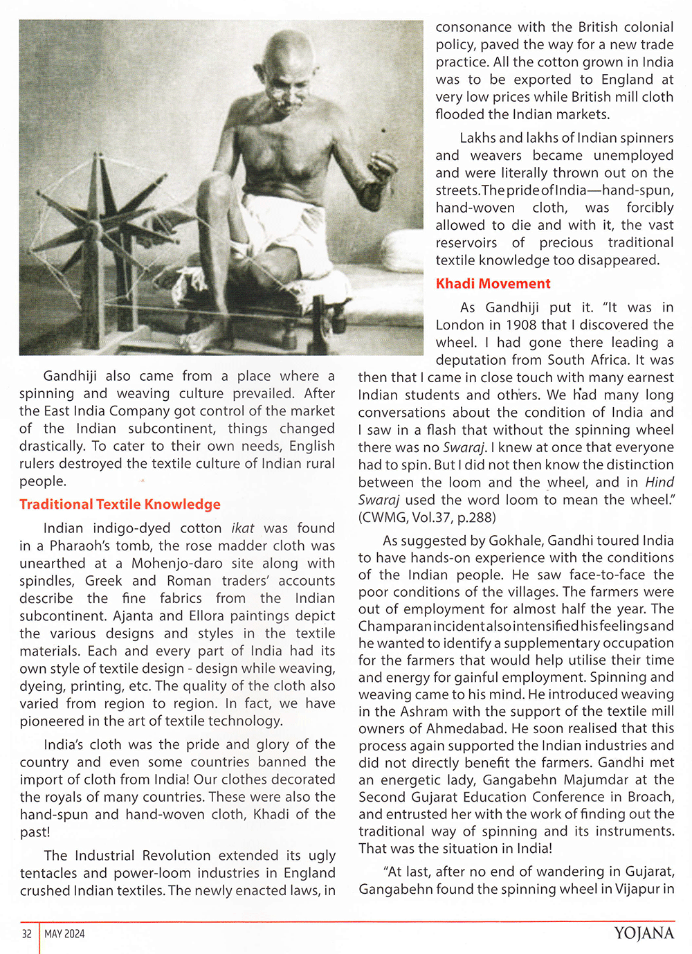 Yojana : Khadi : The icon of Indian Independence