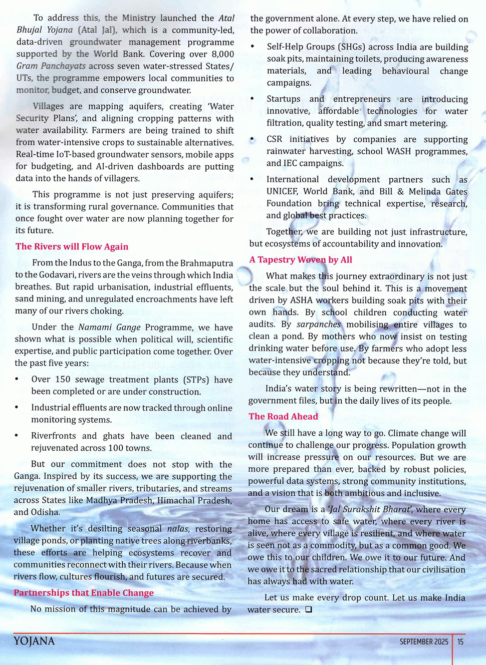 Yojana : Making Water Sources Sustainable