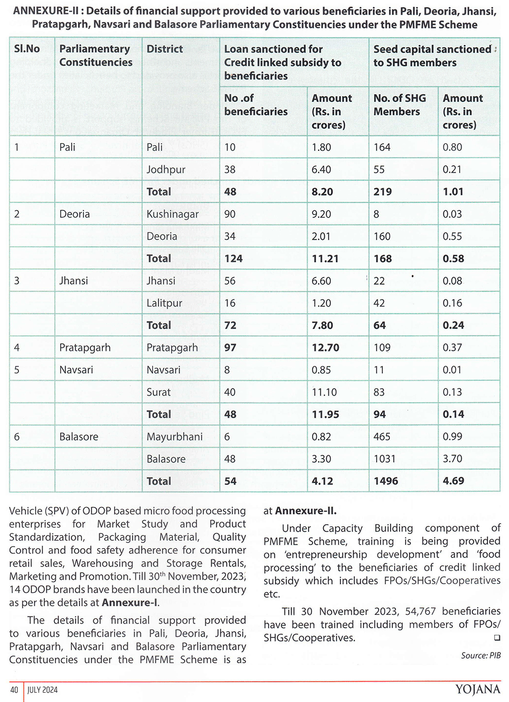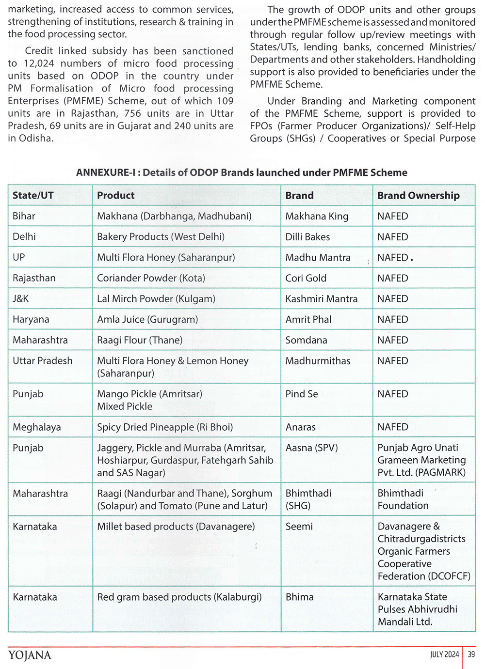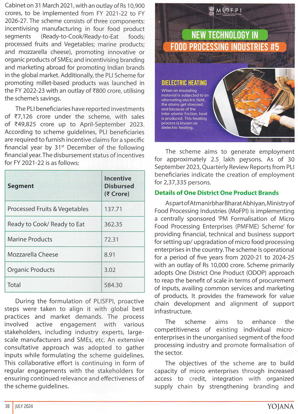 Yojana : Production Linked Incentive Scheme for Food Processing Industry