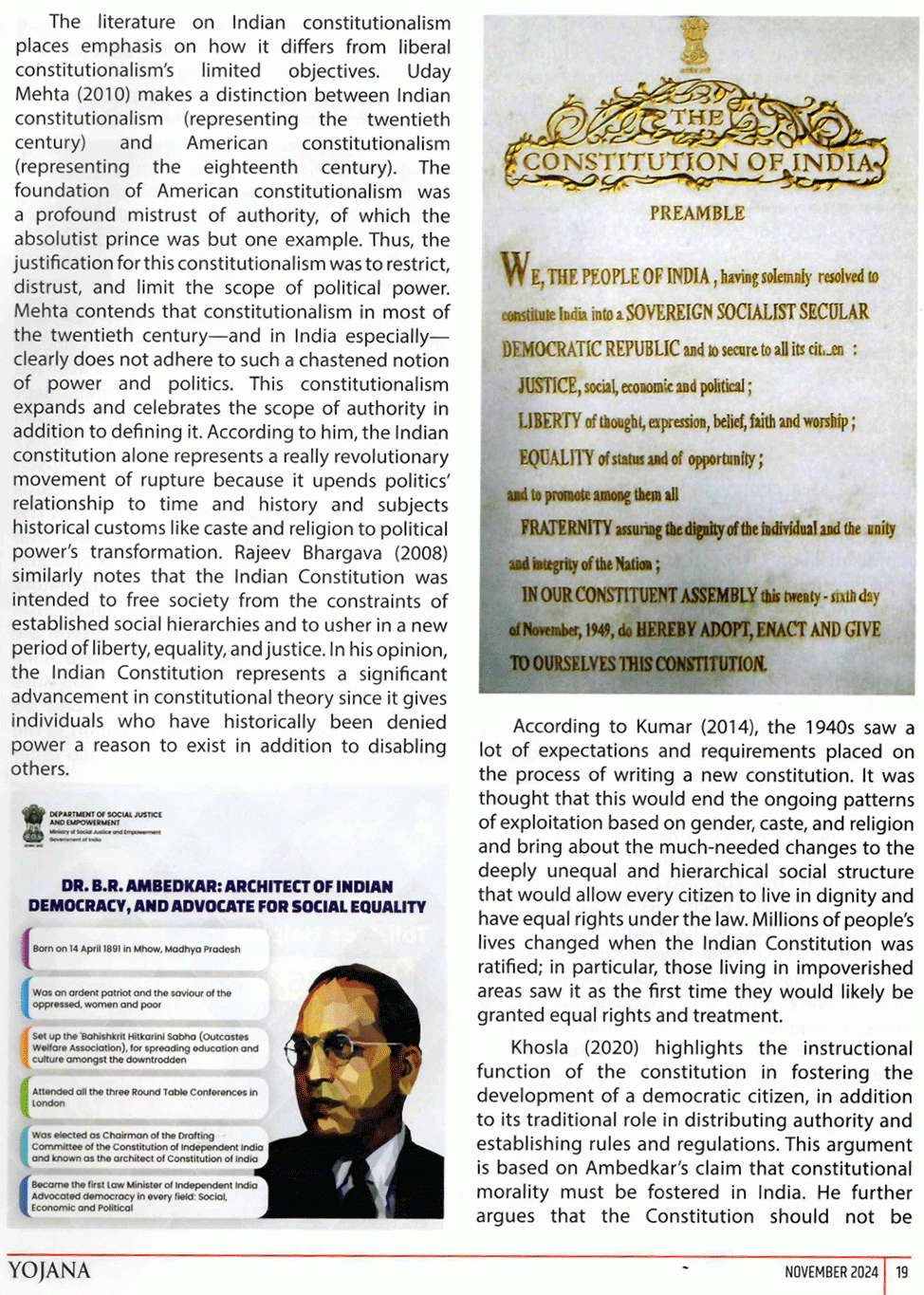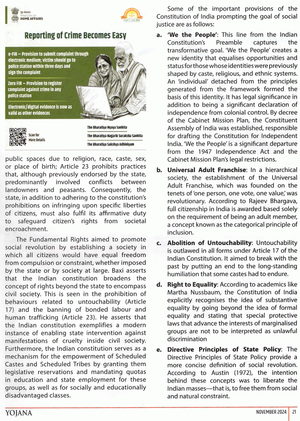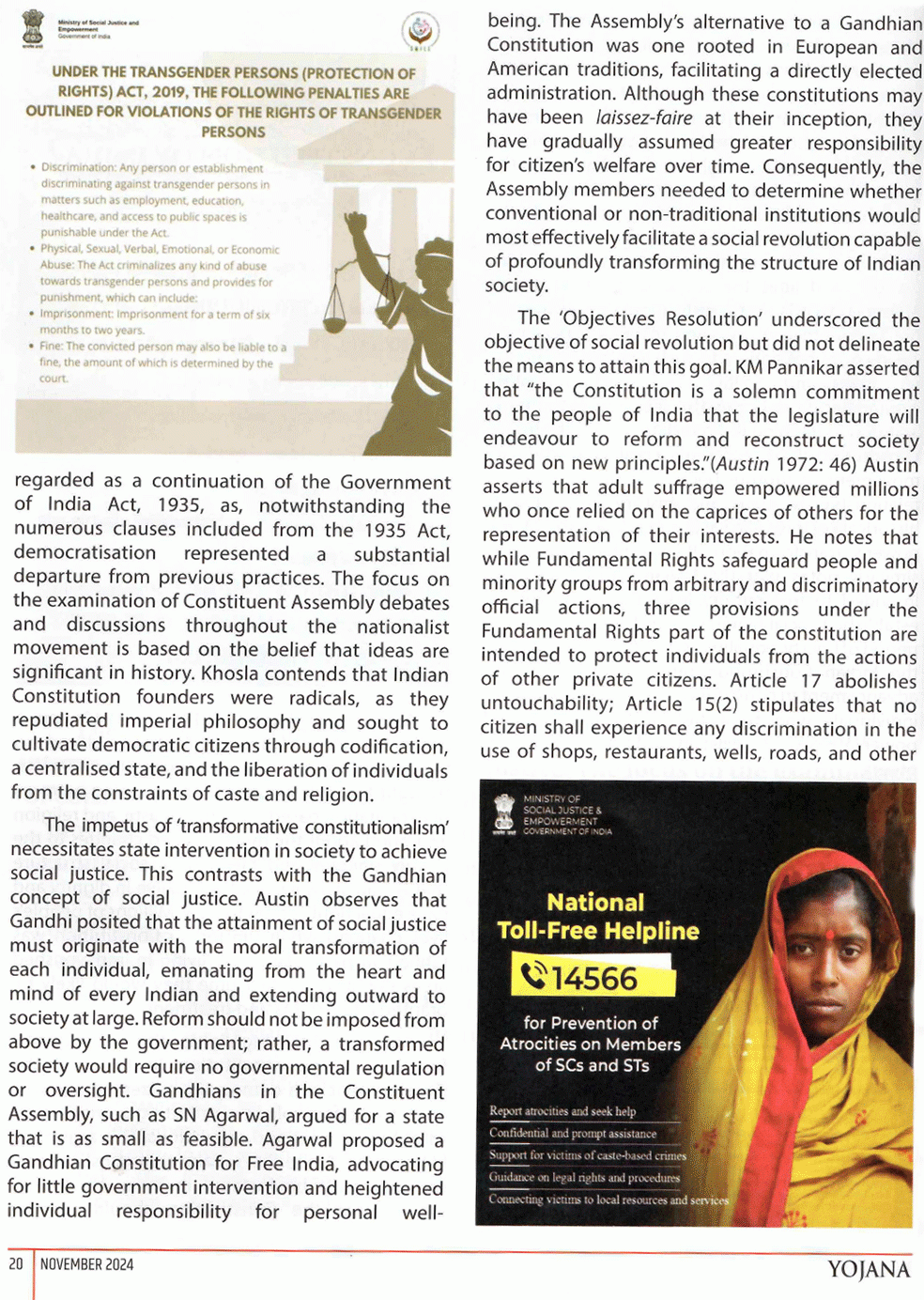 Yojana : Role Of Indian Constitution in Promoting Social Justice