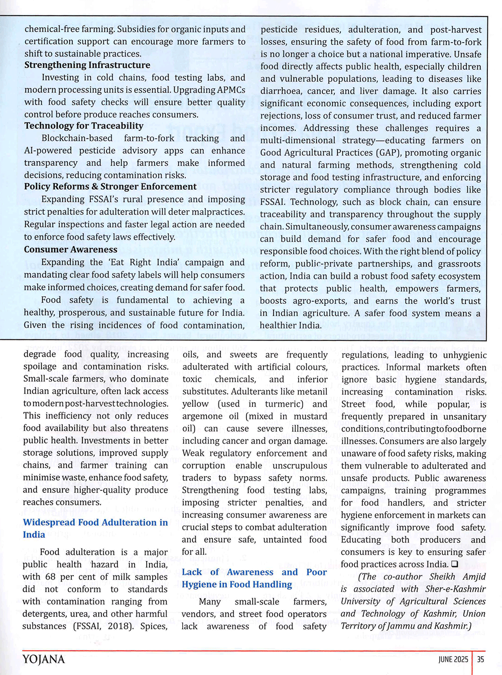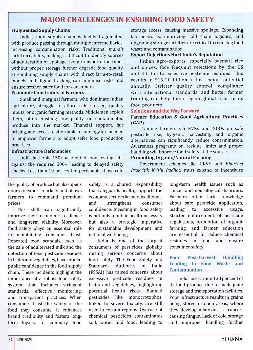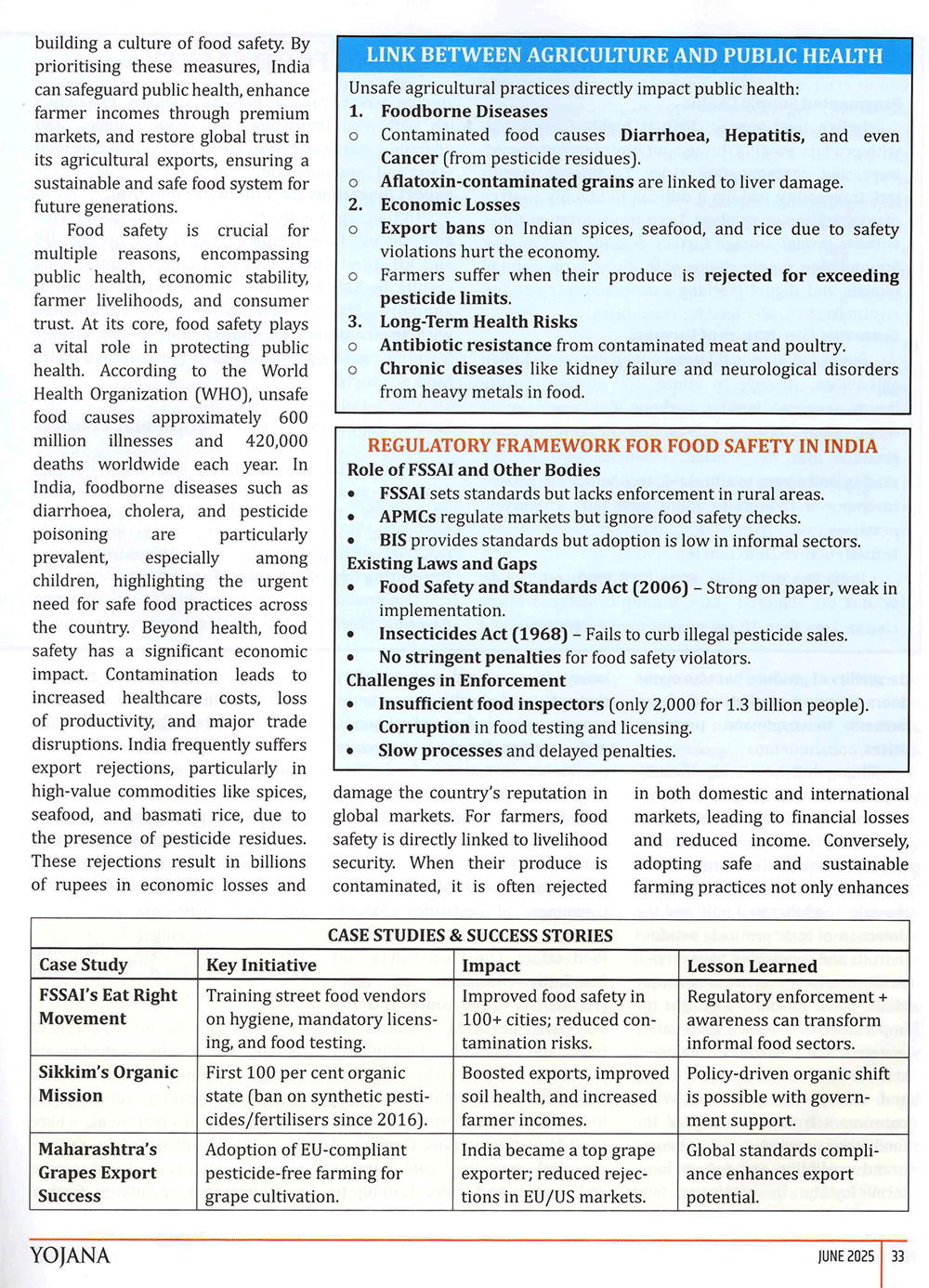 Yojana : Safe Food for a Healthy India