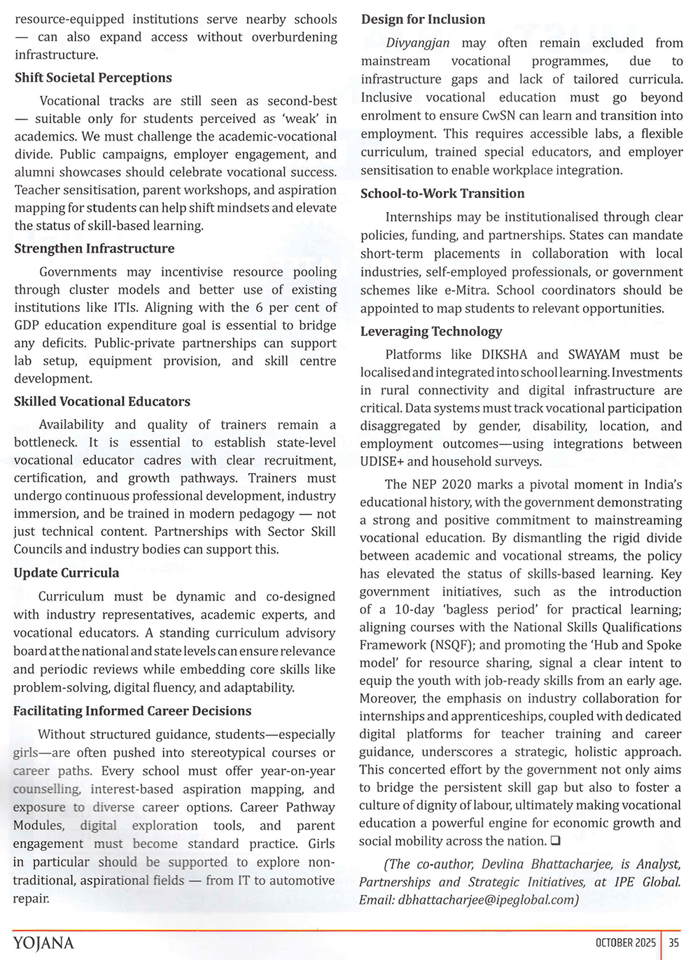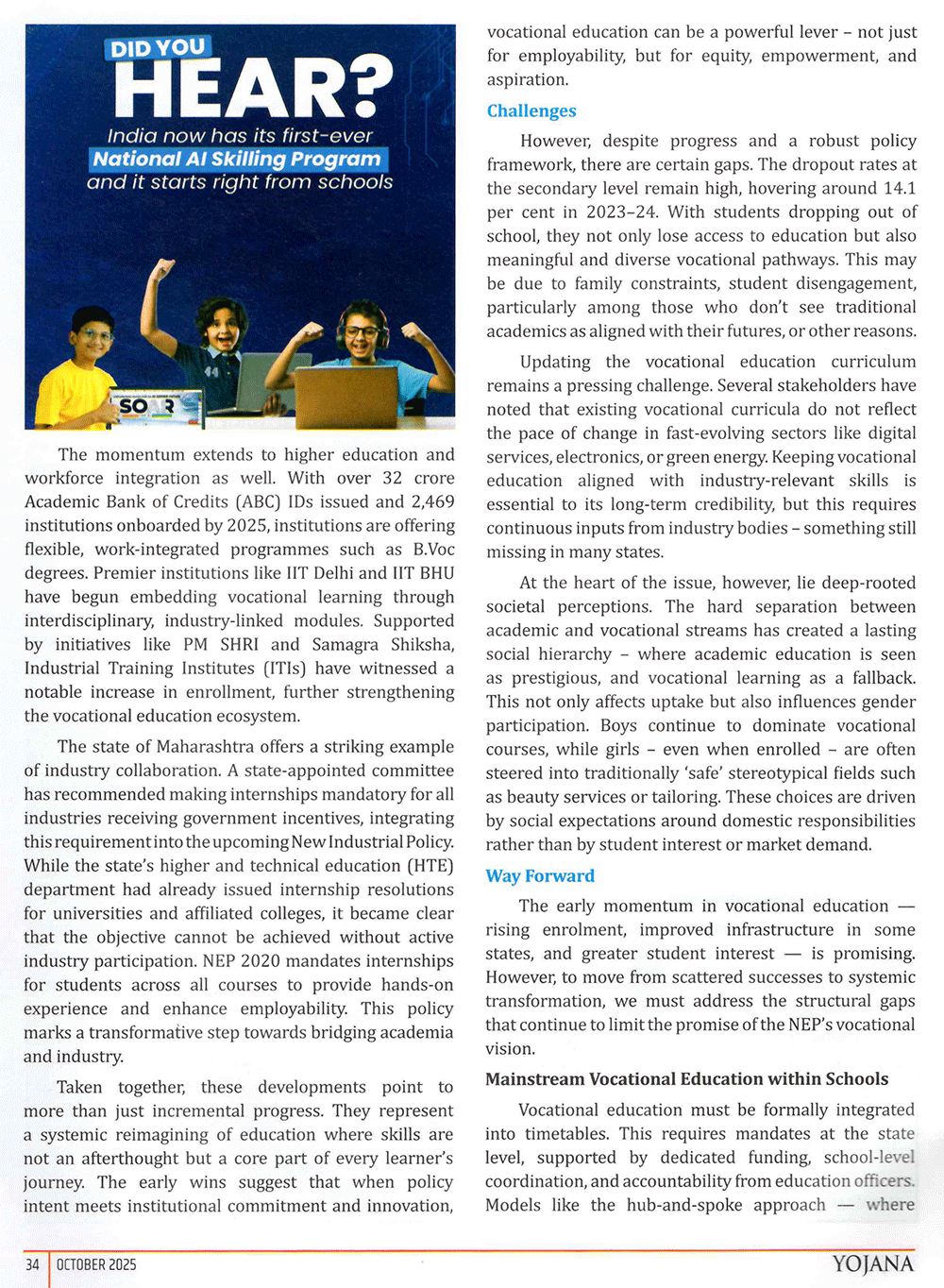 Yojana : Skills-Based Education