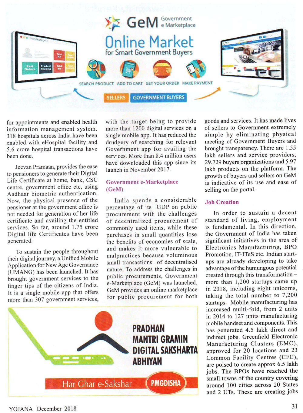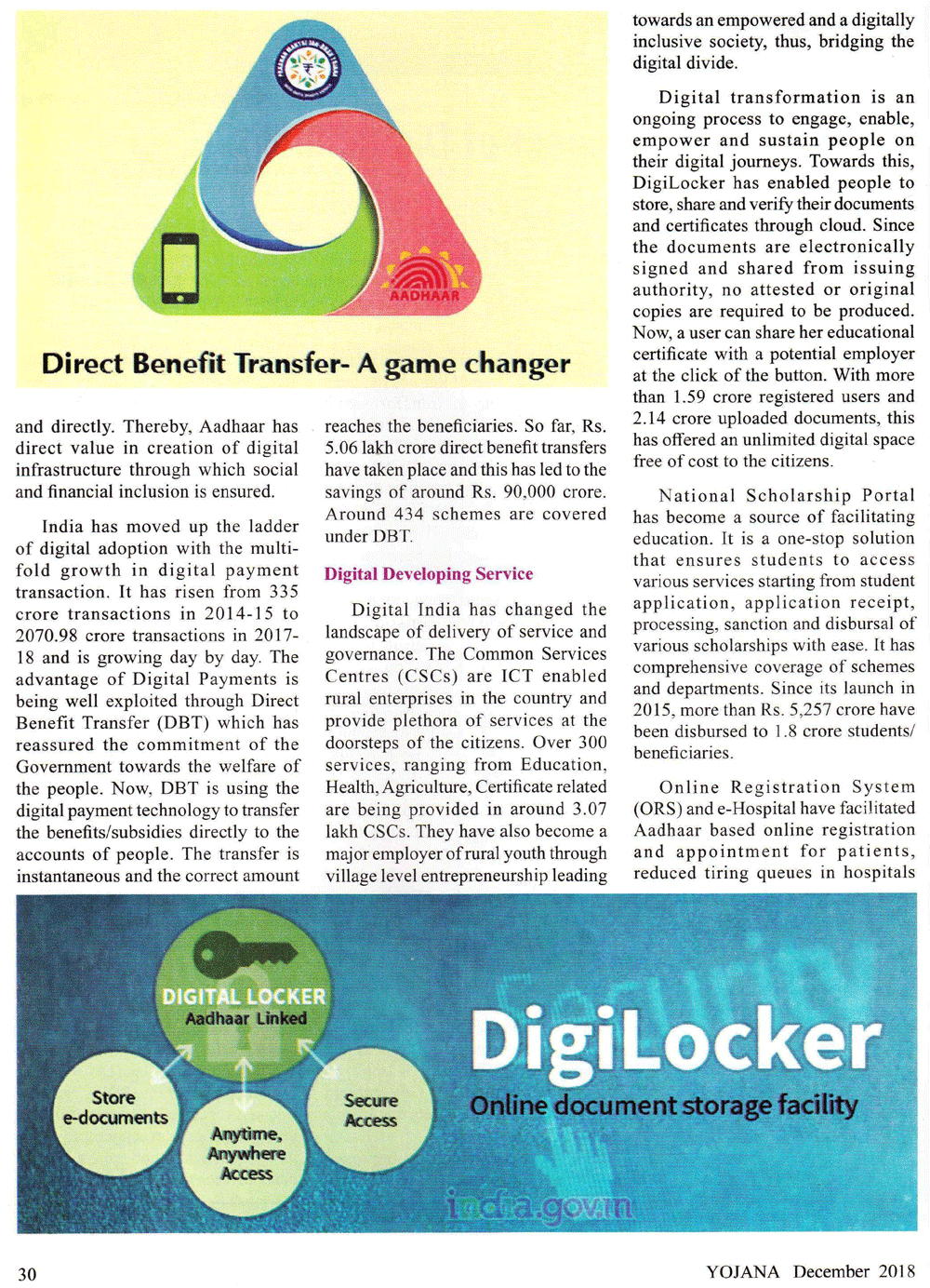 Yojana : Transformative Impact of Digital India (22-12-2018)