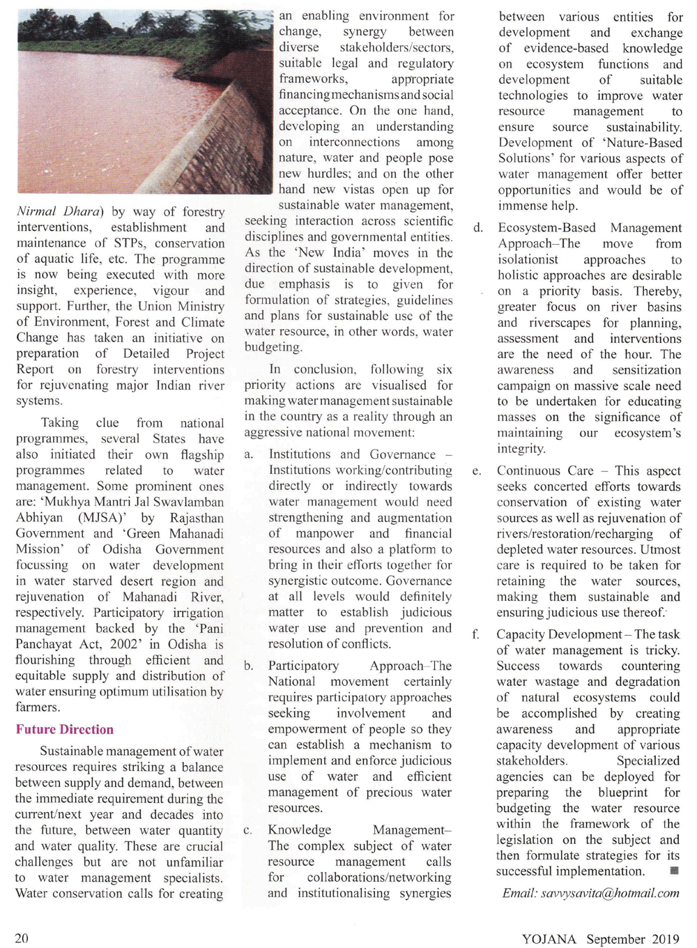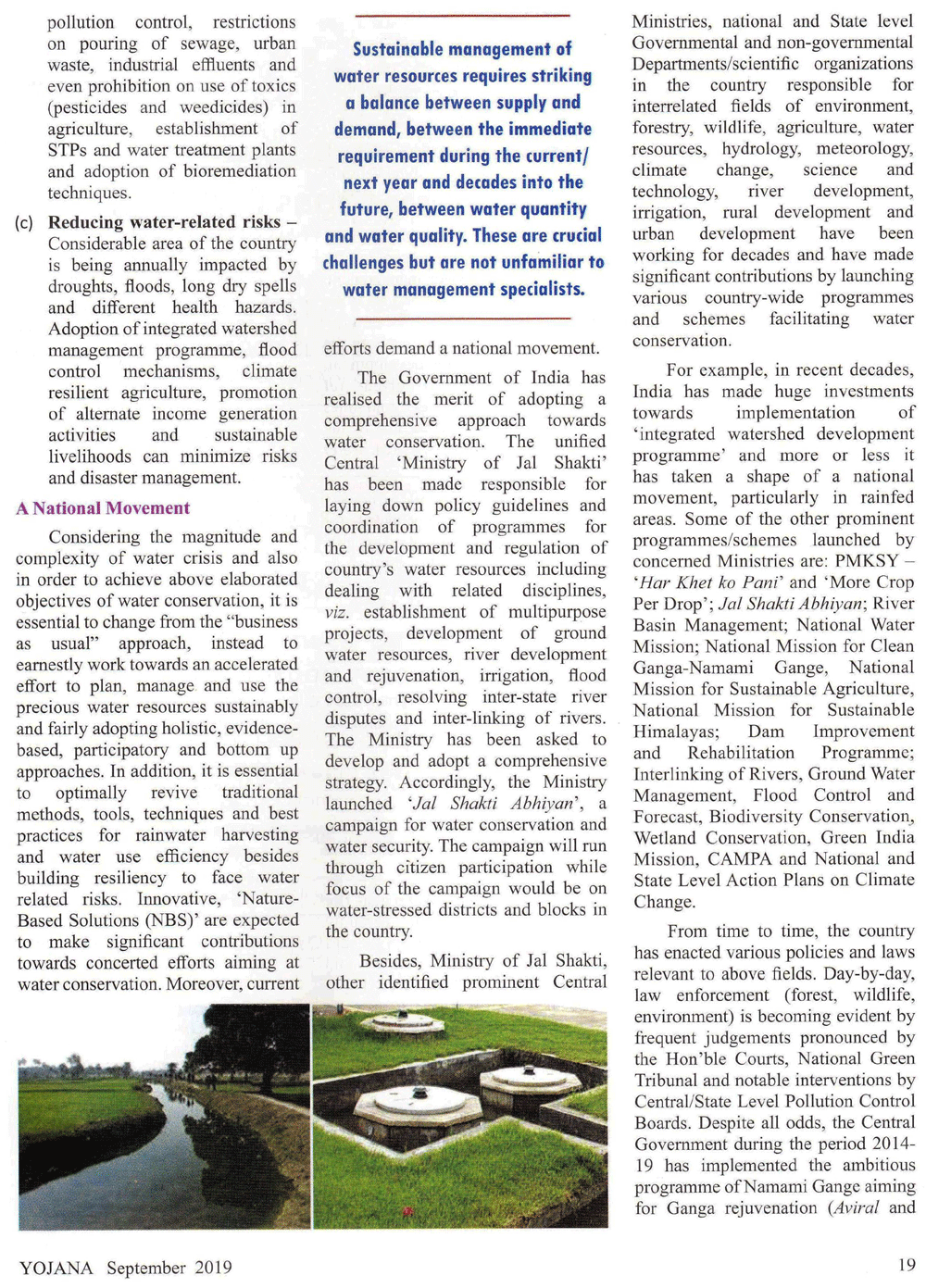 Yojana : Water Conservation as a National Movement (28-09-2019)