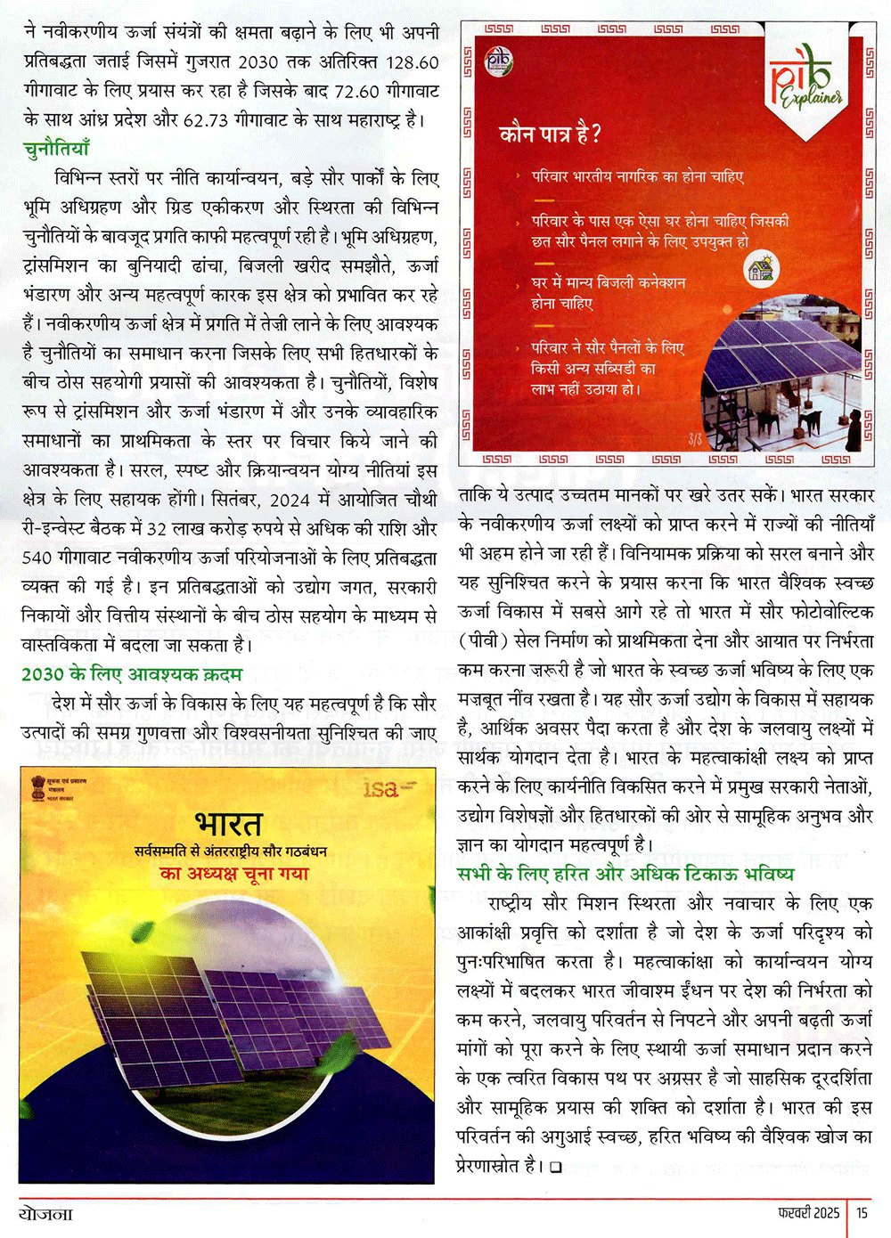 योजना : राष्ट्रीय सौर मिशन: प्रगति, चुनौतियाँ, और 2030 तक नवीकरणीय ऊर्जा स्थापना का मार्ग