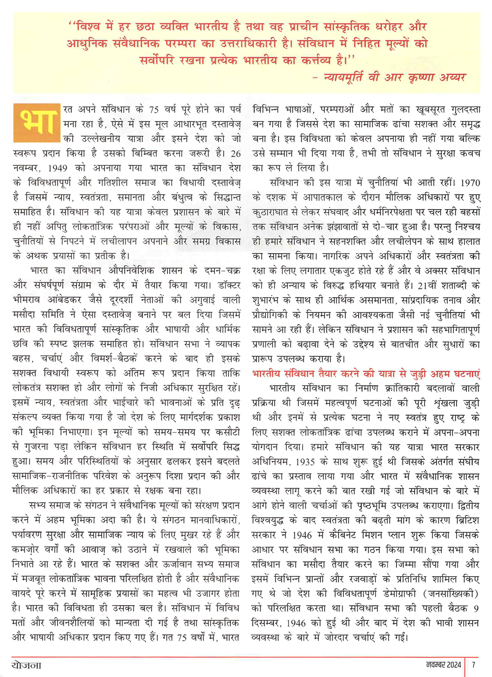 योजना : भारतीय संविधान के 75 वर्ष: गरिमापूर्ण यात्रा