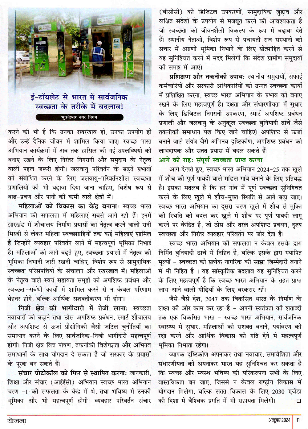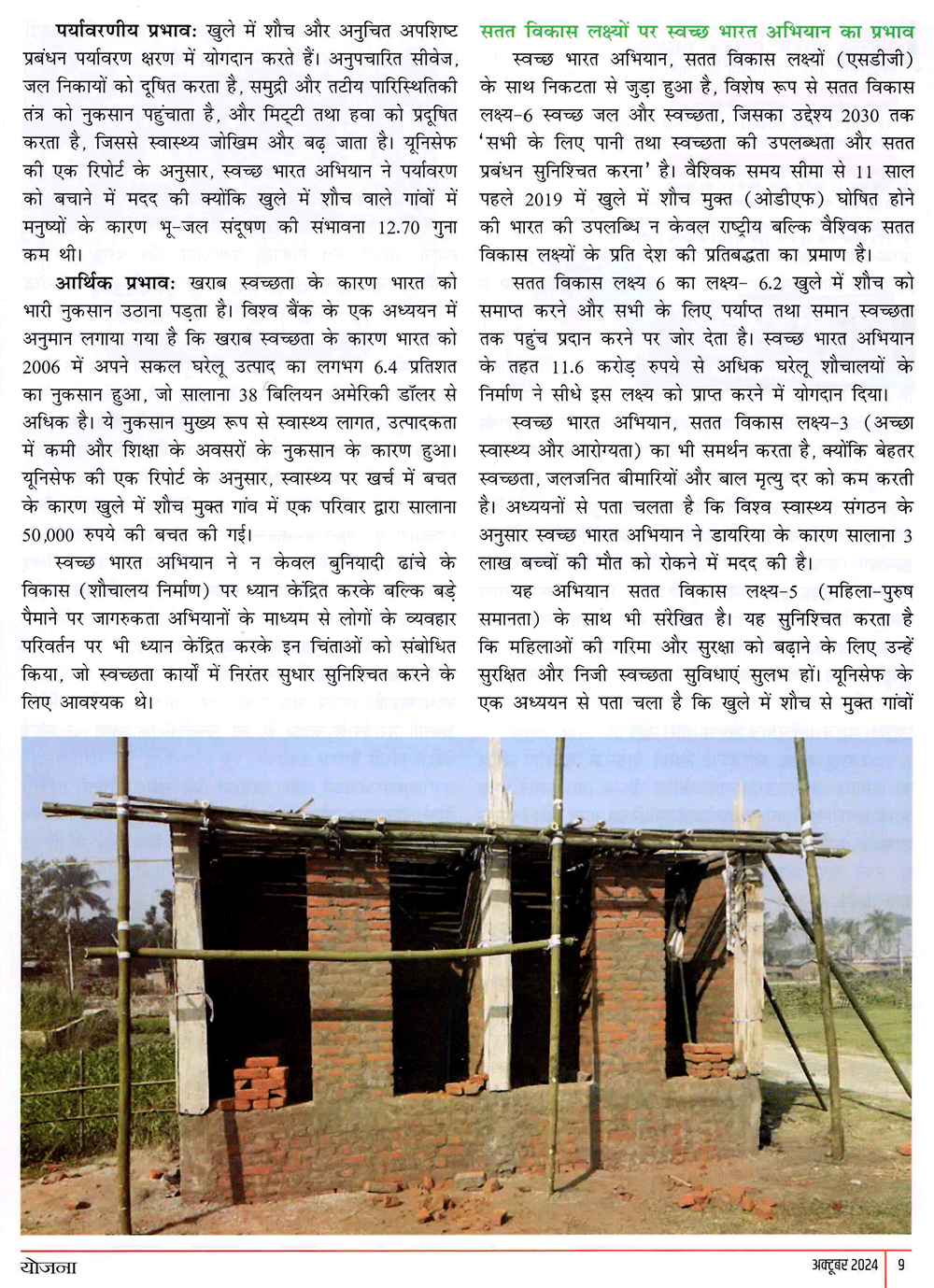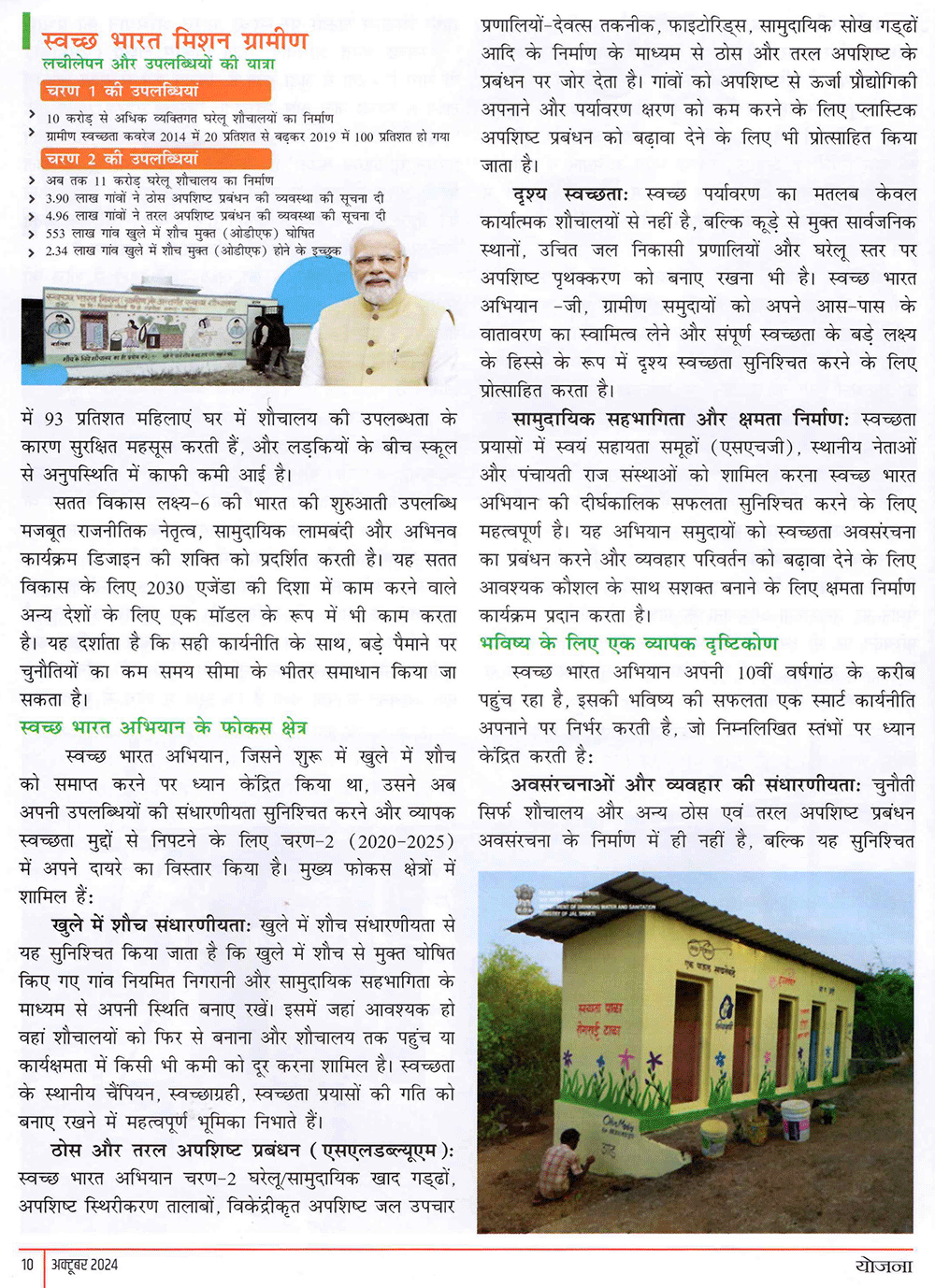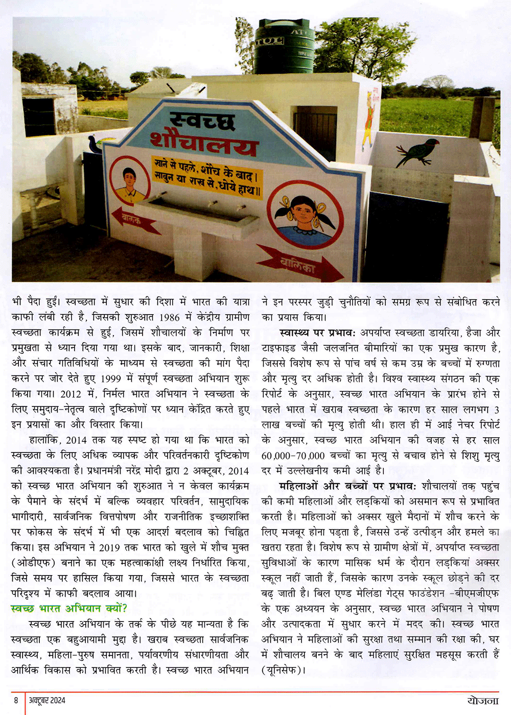 योजना : स्वच्छ भारत अभियान: ग्रामीण स्वच्छता पर प्रभाव और सतत स्वच्छता की सफलता के लिए व्यापक दृष्टिकोण