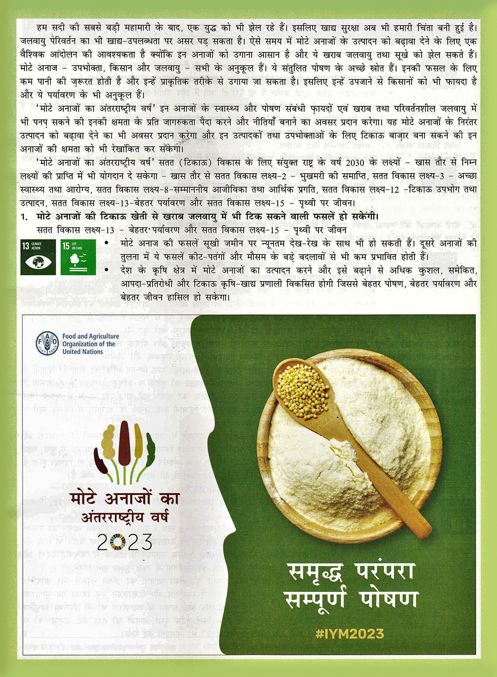 योजना : मोटे अनाजों का अंतरराष्ट्रीय वर्ष-2023