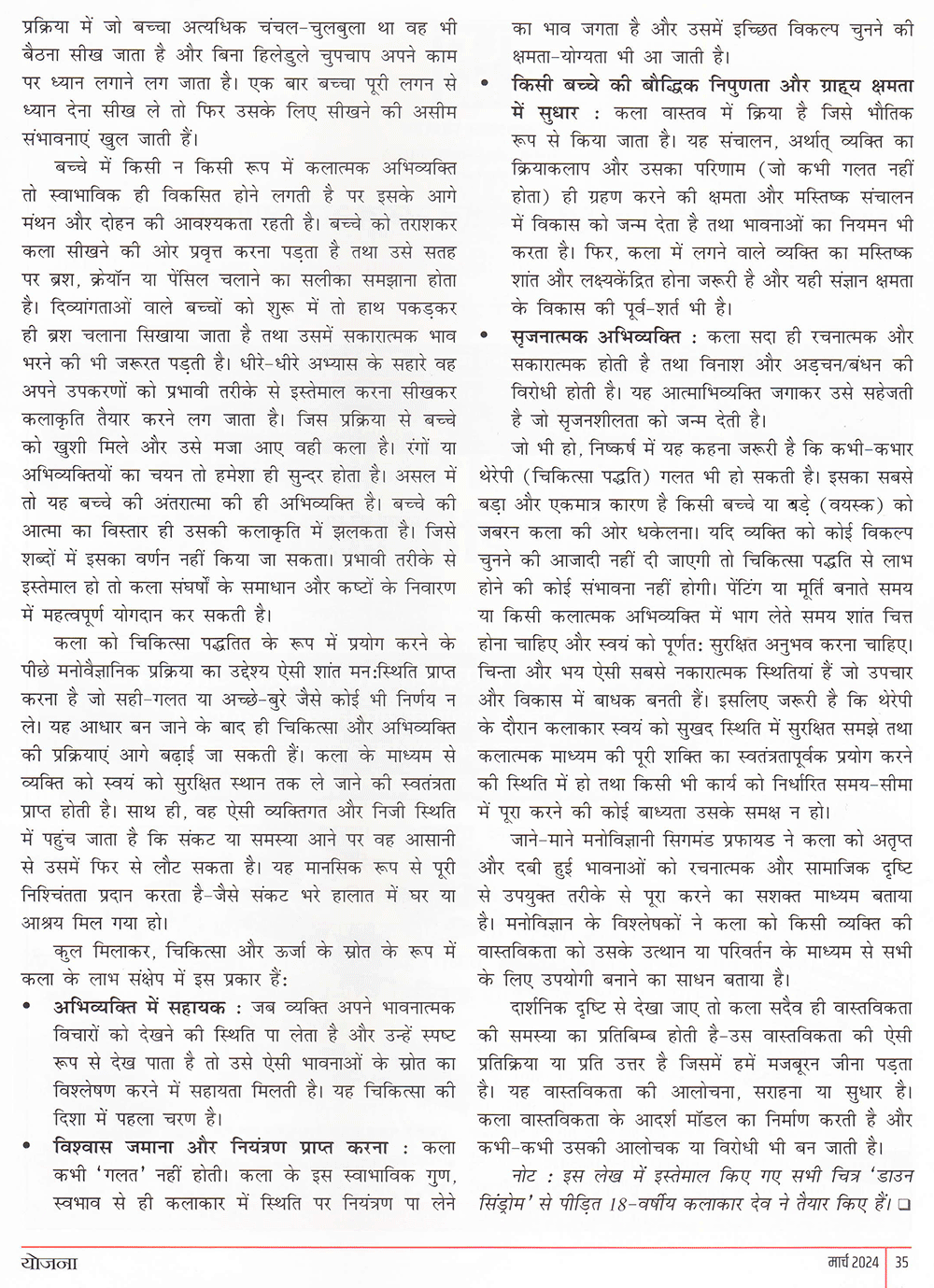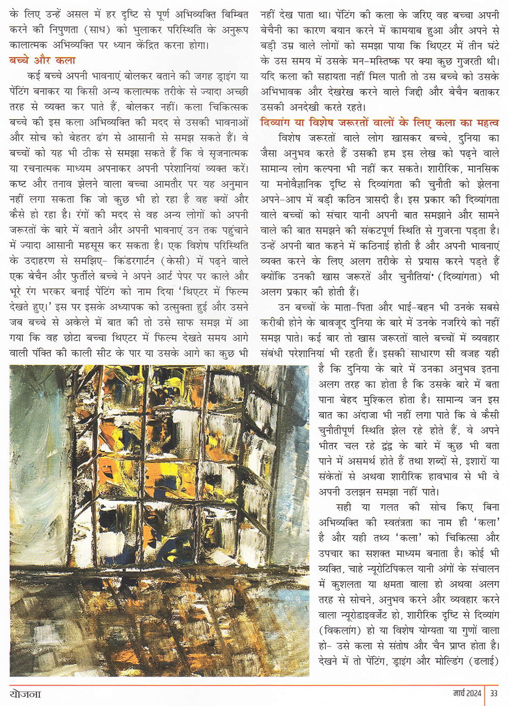 योजना : उपचार और अभिव्यक्ति का सशक्त माध्यम है कला