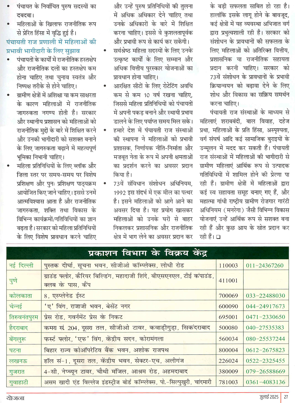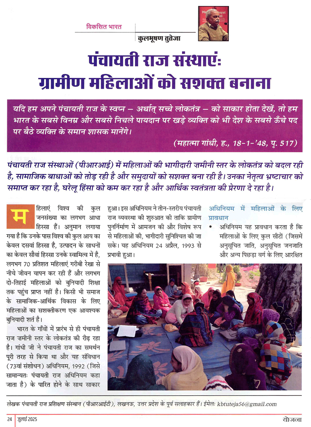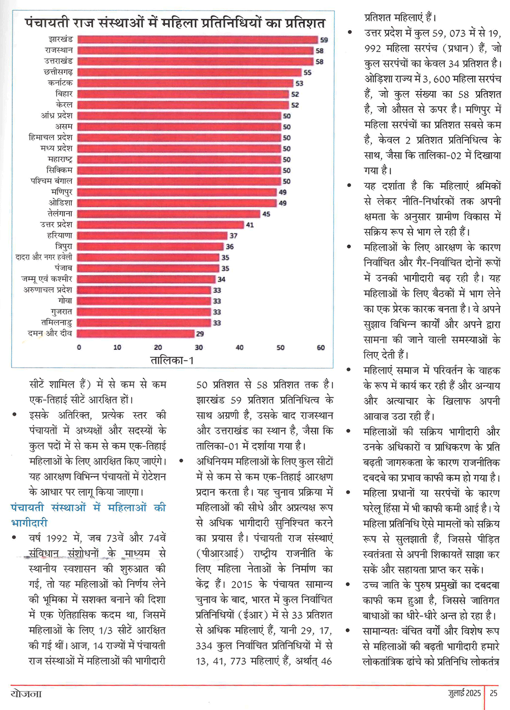 योजना : पंचायती राज संस्थाएँ: ग्रामीण महिलाओं को सशक्त बनाना