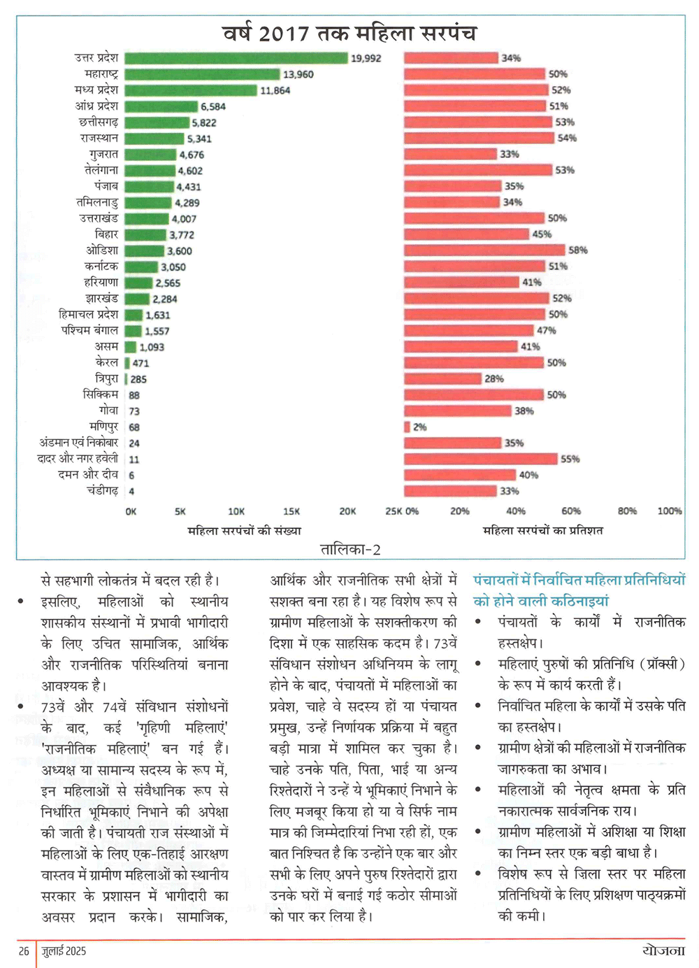 योजना : पंचायती राज और ग्रामीण महिला सशक्तीकरण (13-10-2018)