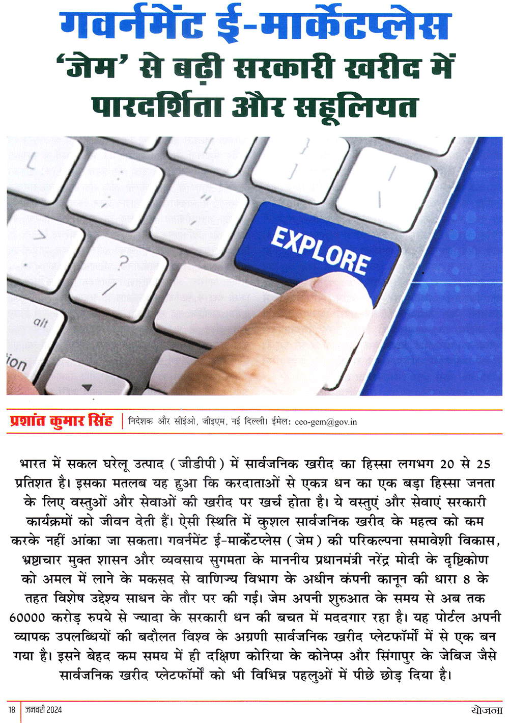 योजना : गवर्नमेंट ई-मार्केटप्लेस ‘जेम’ से बढ़ी सरकारी खरीद में पारदर्शिता और सहूलियत