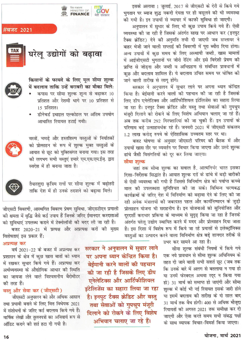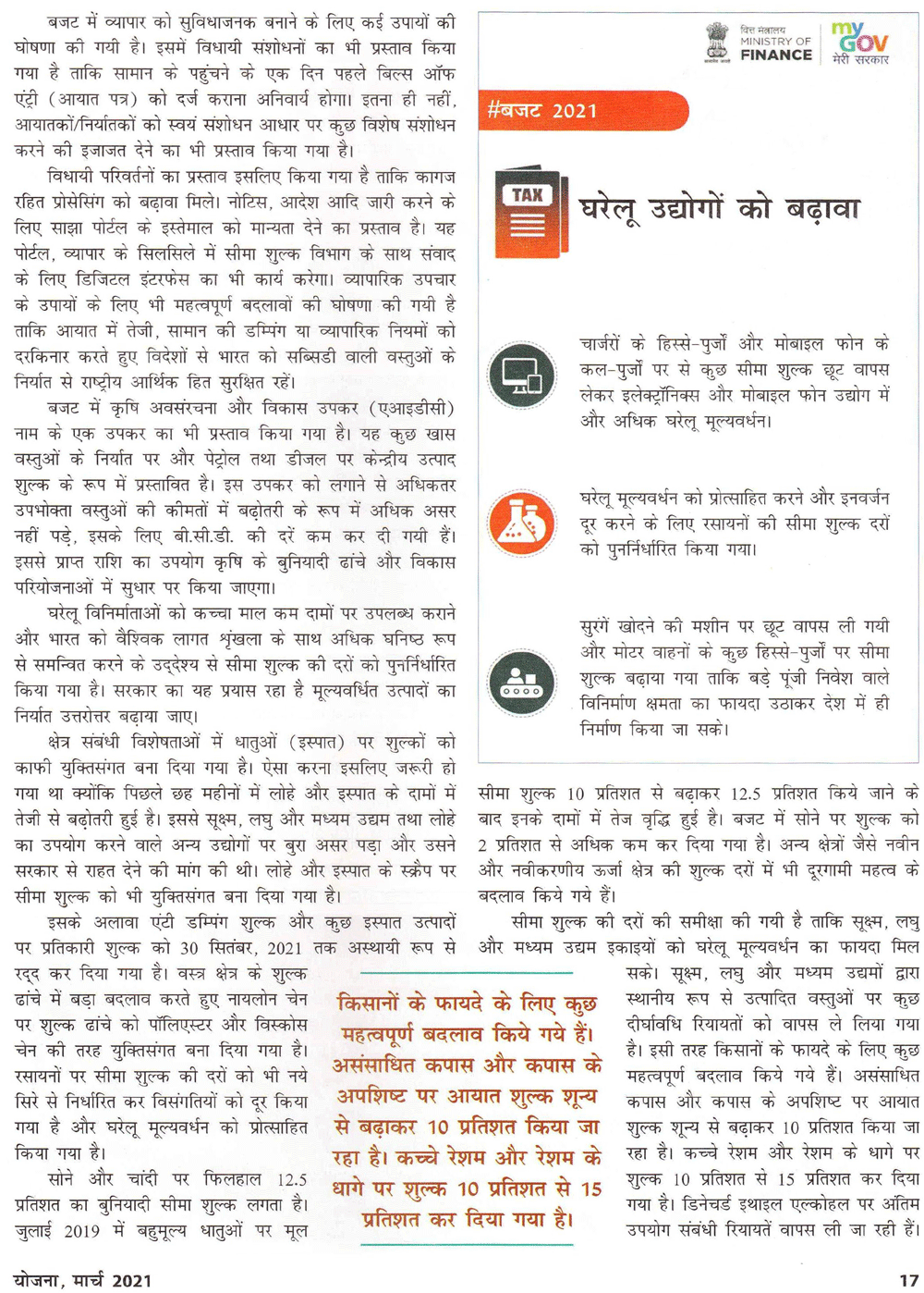 योजना : आत्मनिर्भर भारत की दिशा में (20-03-2021)