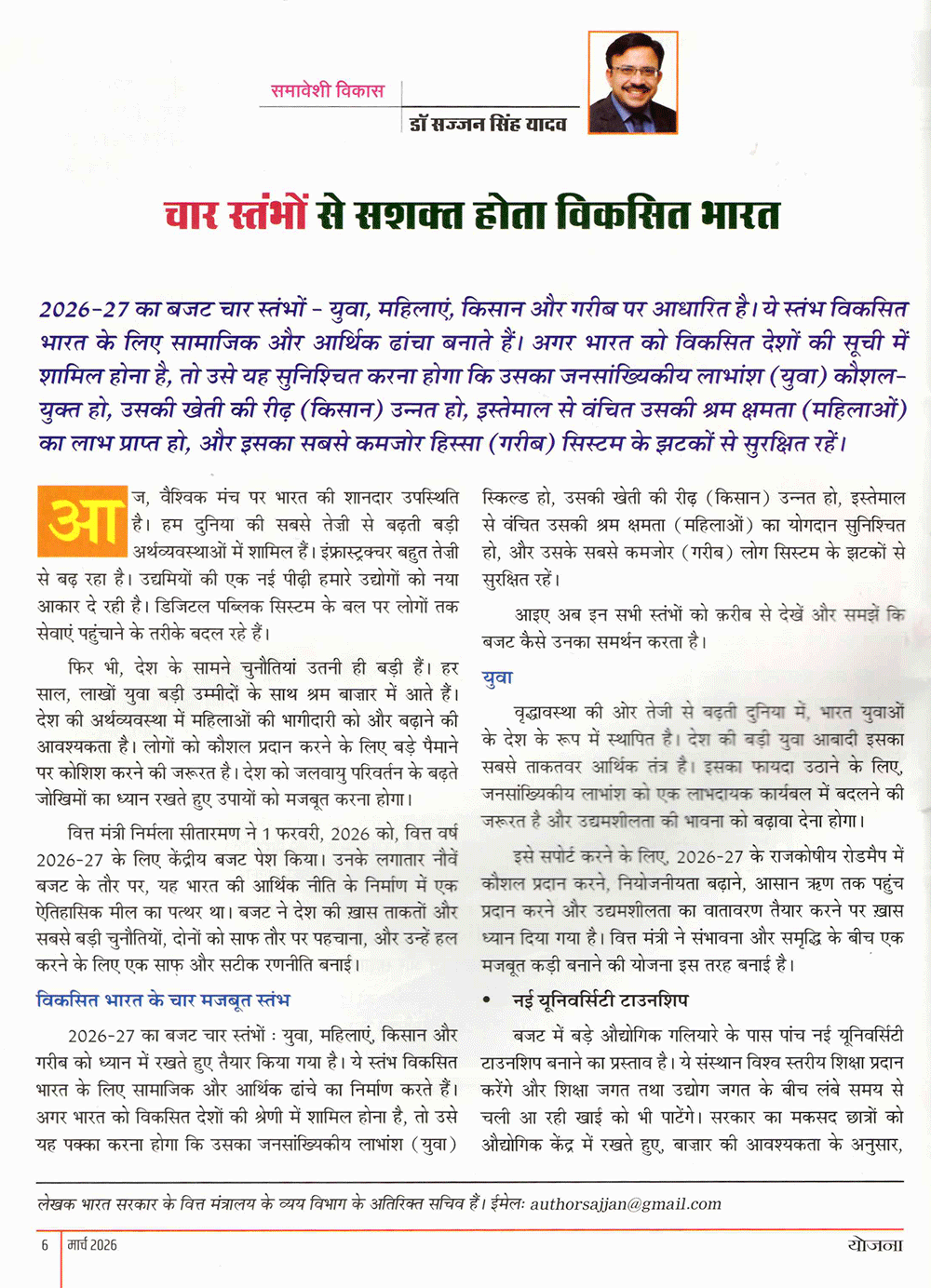 योजना : चार स्तंभों से सशक्त होता विकसित भारत
