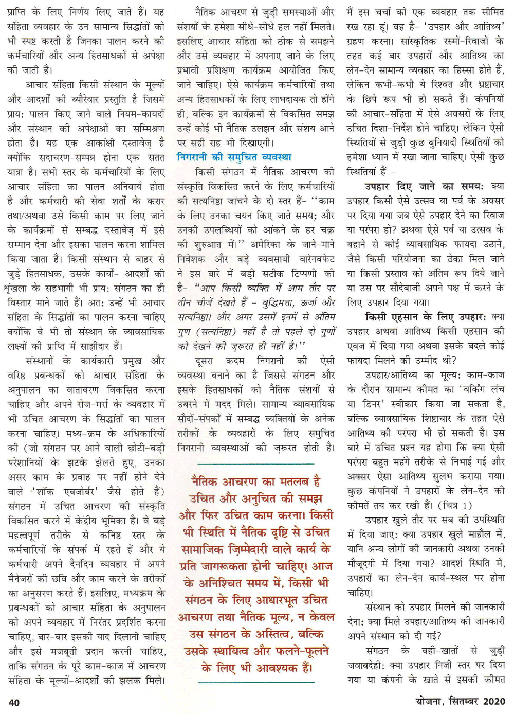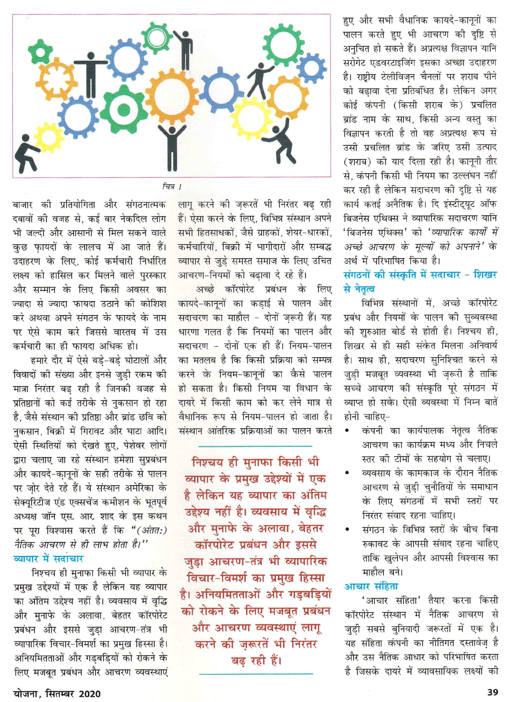 योजना : कॉरपोरेट संस्थानों में सदाचरण (26-09-2020)