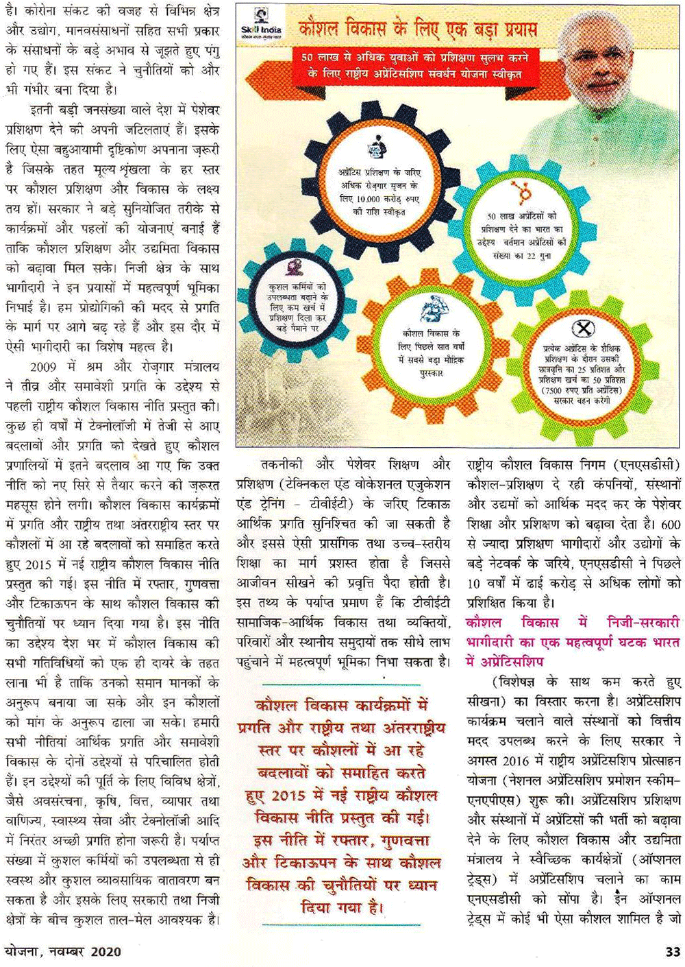 योजना : निजी-सार्वजनिक भागीदारी के जरिए कौशल विकास (28-11-2020)