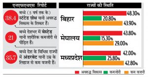देश में स्टंटेड के साथ-साथ, वेस्टेड तथा अंडरवेट बच्चों की संख्या में भी पिछले दशक की तुलना में सुधार आया है, लेकिन इस सुधार की ‘ग्रोथ’ यानी दर को बेहद धीमा कहा जा सकता है।