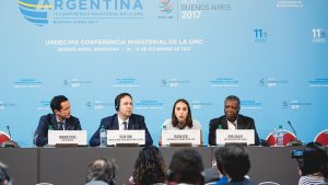 भारत की ओर से यह भी कहा गया कि खाद्य पदार्थो के सार्वजनिक भंडारण का स्थायी हल निकाला जाना चाहिए। यह बात महत्त्वपूर्ण है कि इस सम्मेलन में विकासशील देशों के समूह जी-33 के 47 देशों ने कृषि मुद्दे पर भारत को पूरा समर्थन दिया। साथ ही खाद्य सुरक्षा कार्यक्रम पर भारत और चीन में भी एकता देखी गई। लेकिन इस सम्मेलन में अमेरिका और यूरोपीय यूनियन की नकारात्मक भूमिका रही। भारत के द्वारा उठाई गई खाद्य सुरक्षा की मांग को लेकर इन देशों ने एक साझा स्तर पर पहुंचने से न केवल मना कर दिया वरन् ये देश खाद्य भंडारण के मुद्दे का स्थायी समाधान ढूंढने की अपनी प्रतिबद्धता से भी पीछे हट गए। उल्लेखनीय है कि डब्ल्यूटीओ दुनिया को नियंतण्र गांव बनाने का सपना लिये हुए एक ऐसा नियंतण्र संगठन है, जो दुनिया में उद्योग, व्यापार एवं वाणिज्य को सहज एवं सुगम बनाने का उद्देश्य रखता है। 1 जनवरी, 1995 से प्रभावी हुआ डब्ल्यूटीओ केवल व्यापार एवं बाजारों में पहुंच के लिए प्रशुल्क संबंधी कटौतियां तक सीमित नहीं है, यह नियंतण्र व्यापारिक नियमों को अधिक कारगर बनाने के प्रयास के साथ-साथ सेवाओं एवं कृषि में व्यापार पर बातचीत को व्यापक बनाने का लक्ष्य भी संजोए हुए है। लेकिन न केवल ब्यूनस आयर्स में वरन् डब्ल्यूटीओ के गठन के बाद पिछले 22 वर्षो में यह पाया गया है कि डब्ल्यूटीओ के तहत अमेरिका और अन्य विकसित देशों की स्वार्थपूर्ण गुटबंदी ने कृषि एवं औद्योगिक टैरिफ कटौती सहित कई मुद्दों पर विकासशील देशों के हितों को ध्यान में नहीं रखा है। इस संगठन से दुनिया के विकासशील देशों को कई सार्थक लाभ प्राप्त नहीं हुए हैं। भारत जैसे विकासशील देशों को सेवाओं एवं कृषि उत्पादों सहित अनेक सामानों के निर्यात में भारी परेशानियों का सामना करना पड़ा रहा है। ख्यात अर्थशास्त्री एवं नोबल पुरस्कार विजेता जसेफ ई स्टिग्लिट्ज का कहना है कि डब्ल्यूटीओ का एजेंडा एवं उसके परिणाम दोनों ही विकासशील देशों के खिलाफ हैं। यह पाया गया है कि अमेरिका और विकसित देश आर्थिक संरक्षणवाद की अधिक ऊंची दीवारें खड़ी करते जा रहे हैं।