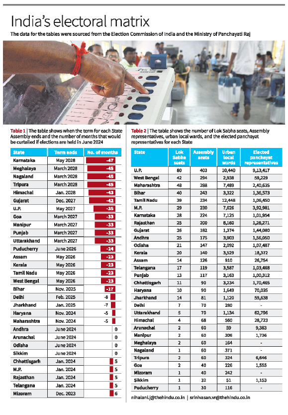 The next Lok Sabha election is due to be held before June 16, 2024. If the simultaneous elections idea bears fruit and is ratified and implemented, this would curtail the terms of all Legislative Assemblies barring those of four States — Andhra Pradesh, Arunachal Pradesh, Odisha, and Sikkim. The election cycles for these four States have coalesced with elections to the Lok Sabha over time. If simultaneous elections are held in 2029, it would require a similar exercise of curtailment or extension of Assembly terms.