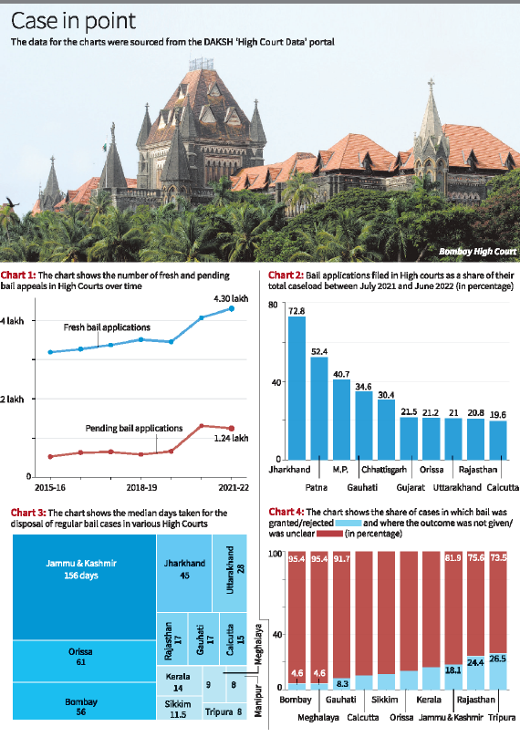 The data follow a July to June cycle. For instance, between July 2021 and June 2022, 4.3 lakh bail appeals were filed in High Courts.